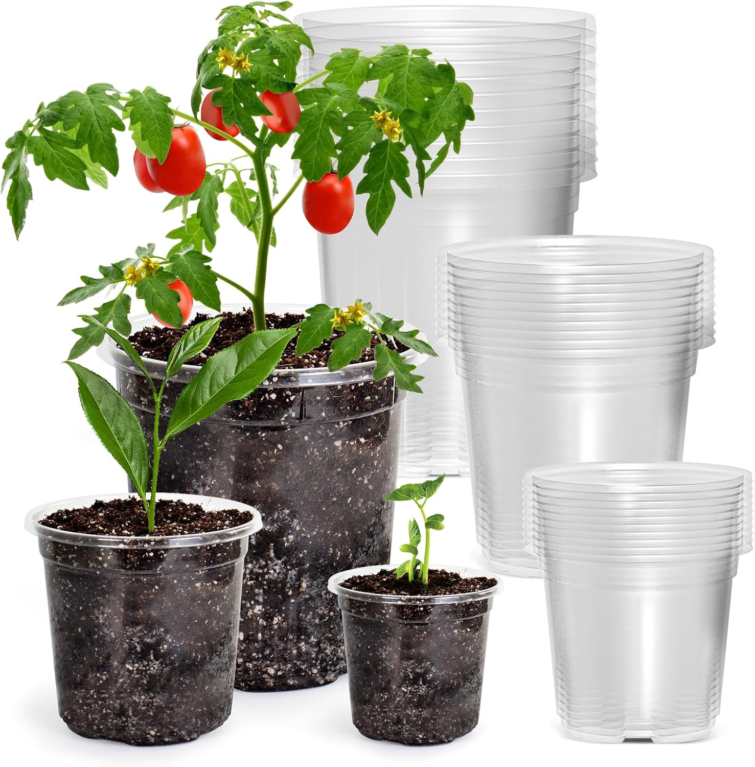 - 【 Optimal Drainage System 】The bottom of these starter pots have some drainage holes to help the plant's root respiration and prevent root rot. Thrive your young and lovely plants in these clear pots.