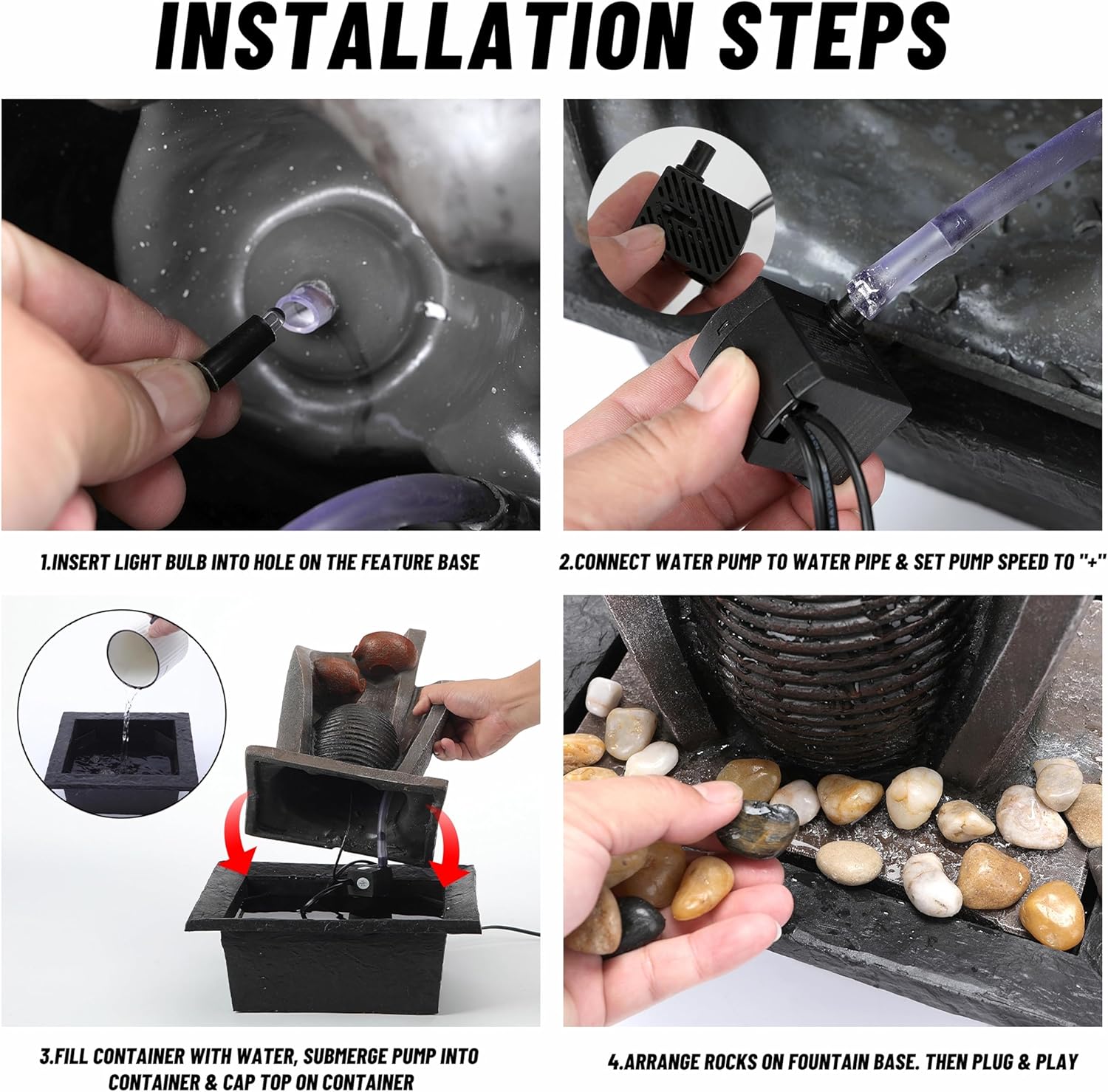 - Immerse yourself in tranquility with our indoor tabletop fountain. Ideal desk water fountain or room decor, it enhances any environment. Enjoy the gentle sound of this flowing water machine, promoting relaxation and focus. Elevate your space with this timeless zen water fountain with LED lighting