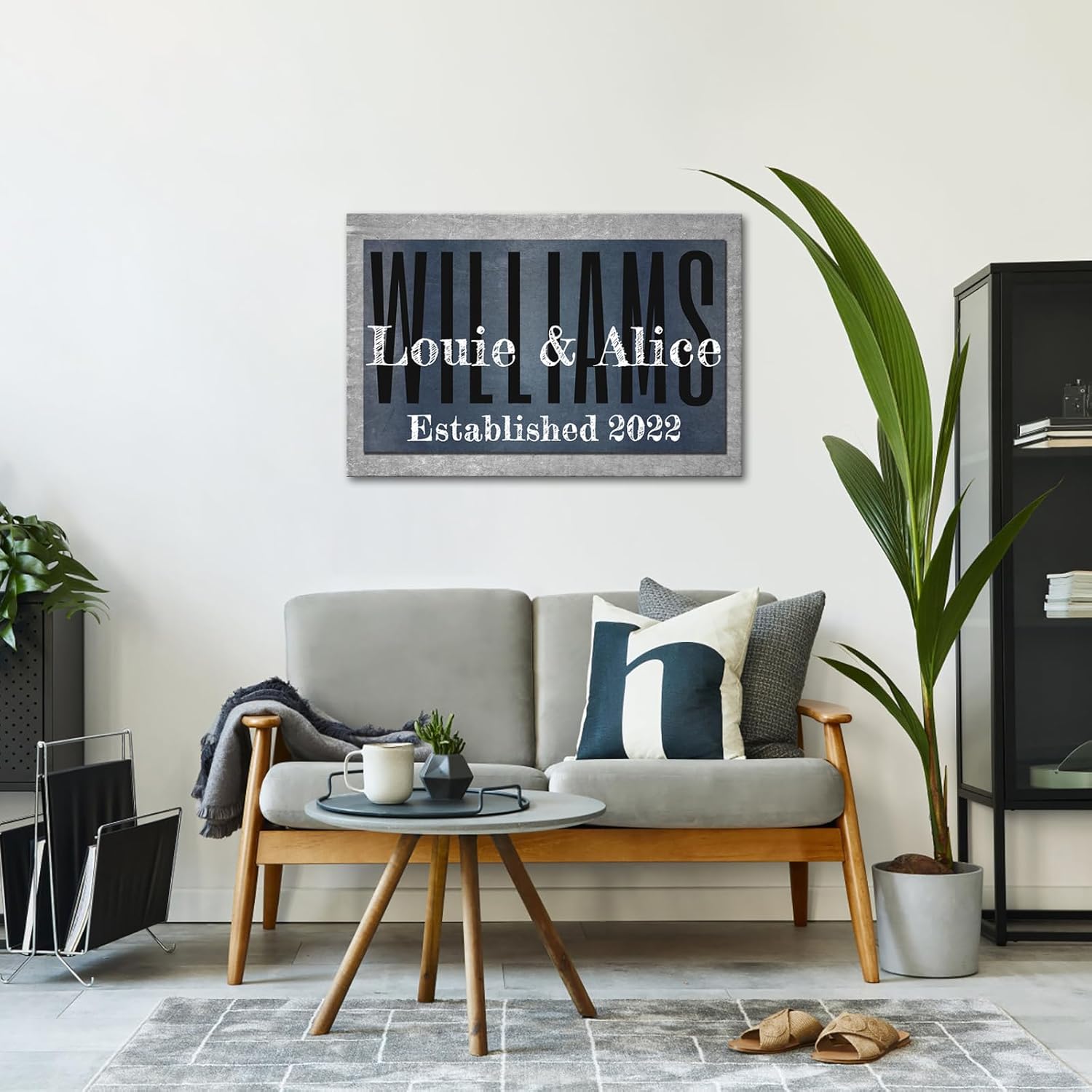 iLOOKLiKE Personalized Last Name Signs with Couple's Names Wall Art Custom Family Established Date Canvas Prints Framed Unique Wedding Anniversary Housewarming Gifts for Home Decor 8×12inch