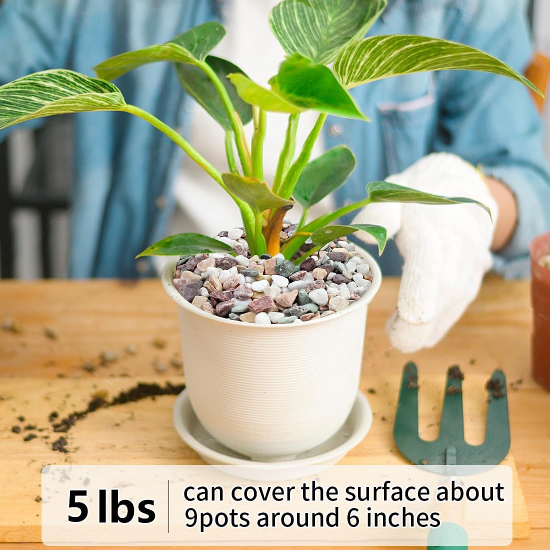 - 【Pebbles Size】These stones are packaged in a 5 pounds bag. The size is about 1/5 inch, it is perfect for succulent and cactus, as well as any vase or terrarium. The first picture shows the product in two states: dry and wet, and the pebbles color is more vibrant in the wet state
