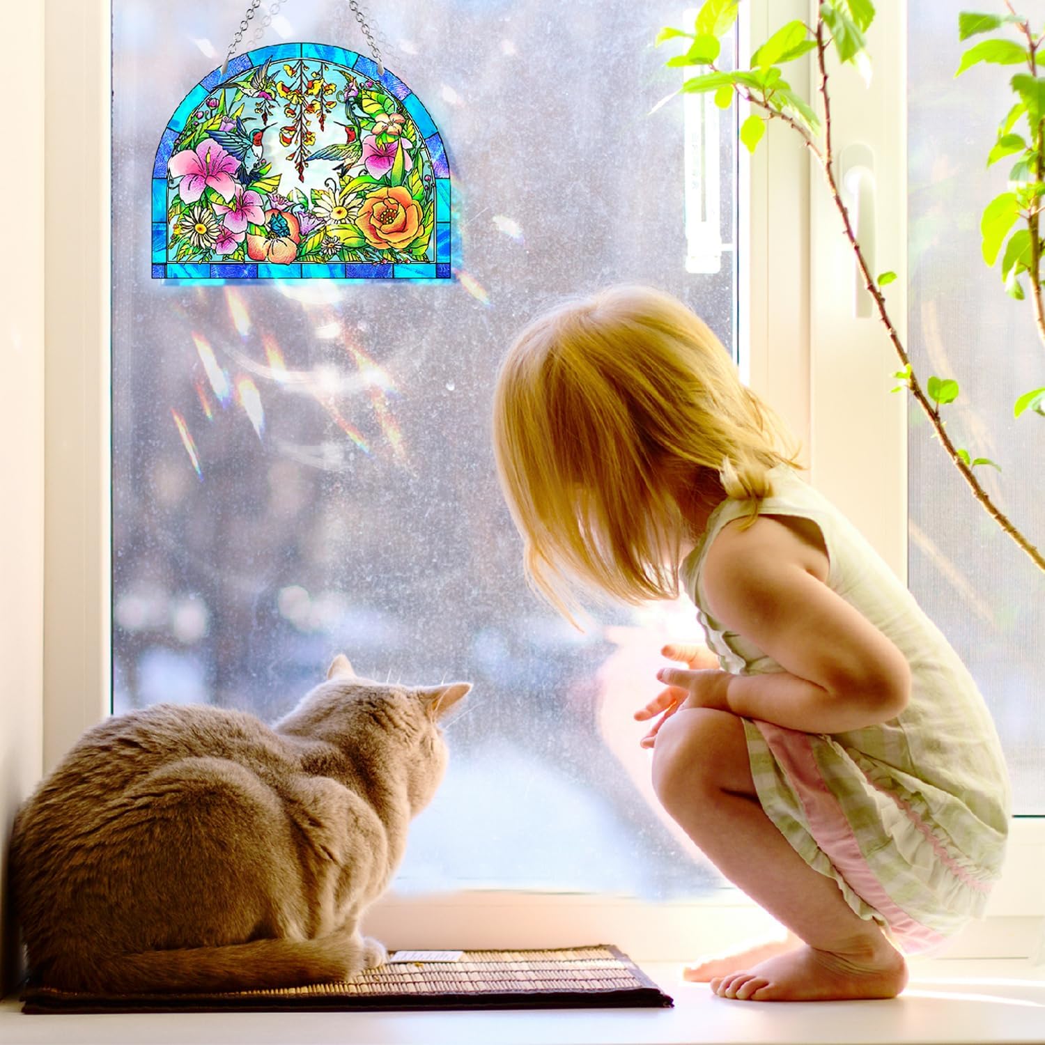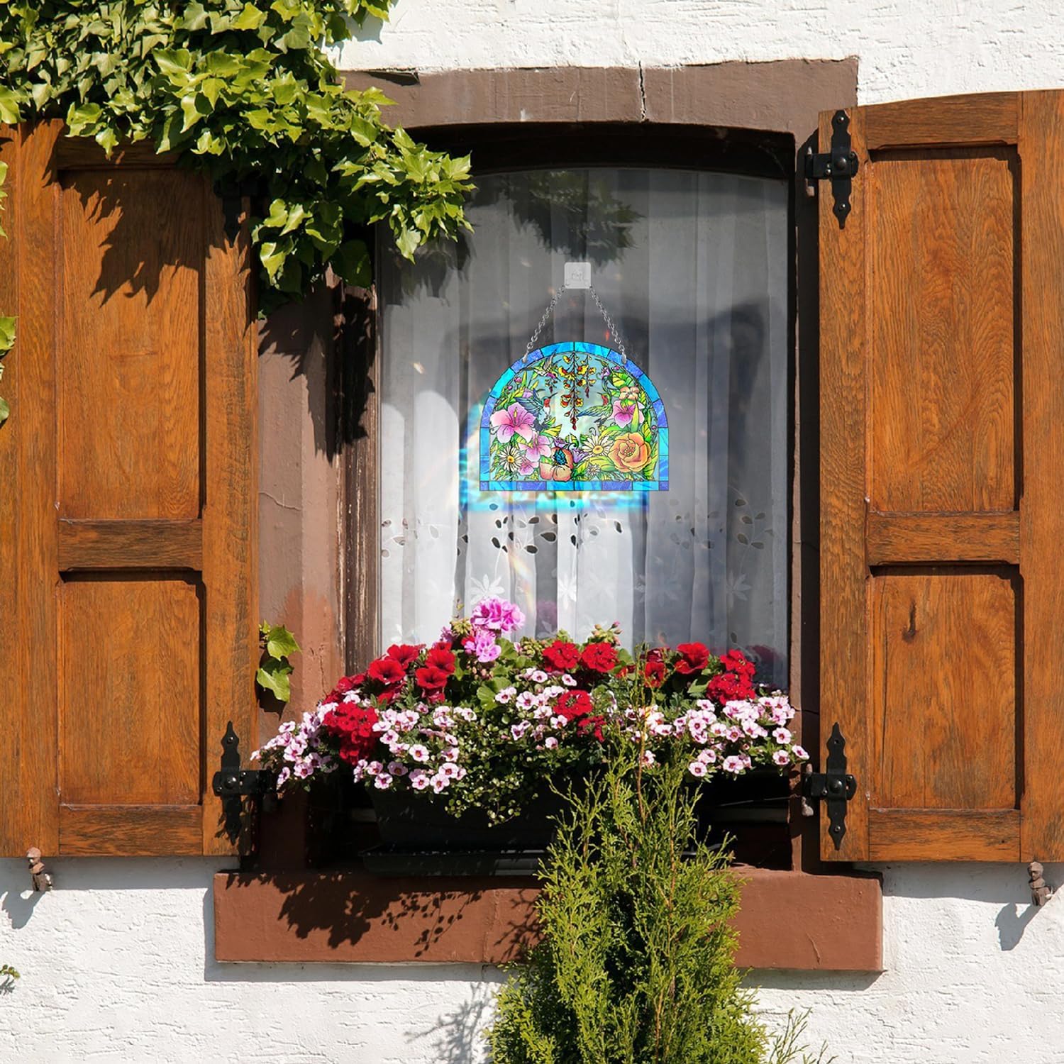 - 【Beautiful Decor】The hummingbird suncatcher can delight the dull outlook when you look outside the window. When the sunshine is across the suncatcher, the reflected shine and shadow will make indoors more colorful. Birds and flowers always make people think of spring. Designers designed it in the spring, hoping to retain that vibrant and positive scenery.