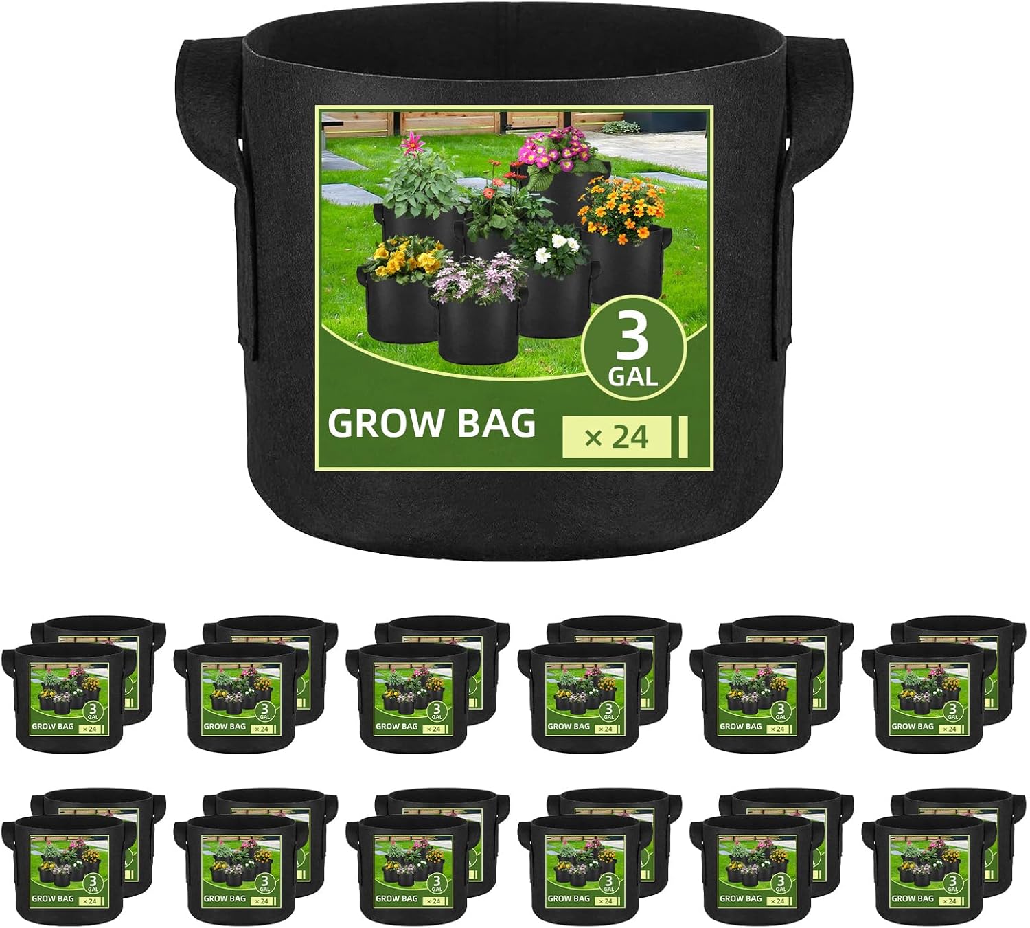 24 Pack 3 Gallon Grow Bags, Heavy Duty Thickened Aeration Fabric Pots with Handles for Vegetable/Flower/Plant