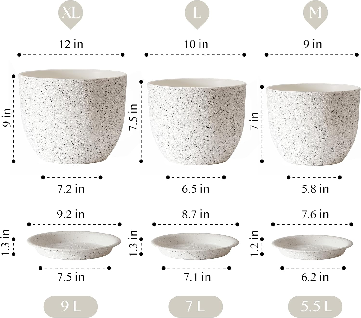 - LIGHTWEIGHT YET DURABLE CONSTRUCTION: Crafted from premium, eco-friendly polypropylene, these pots offer the look of ceramic while being lightweight, impact-resistant, and odor-free. They wonβt crack, warp, or fade over time.