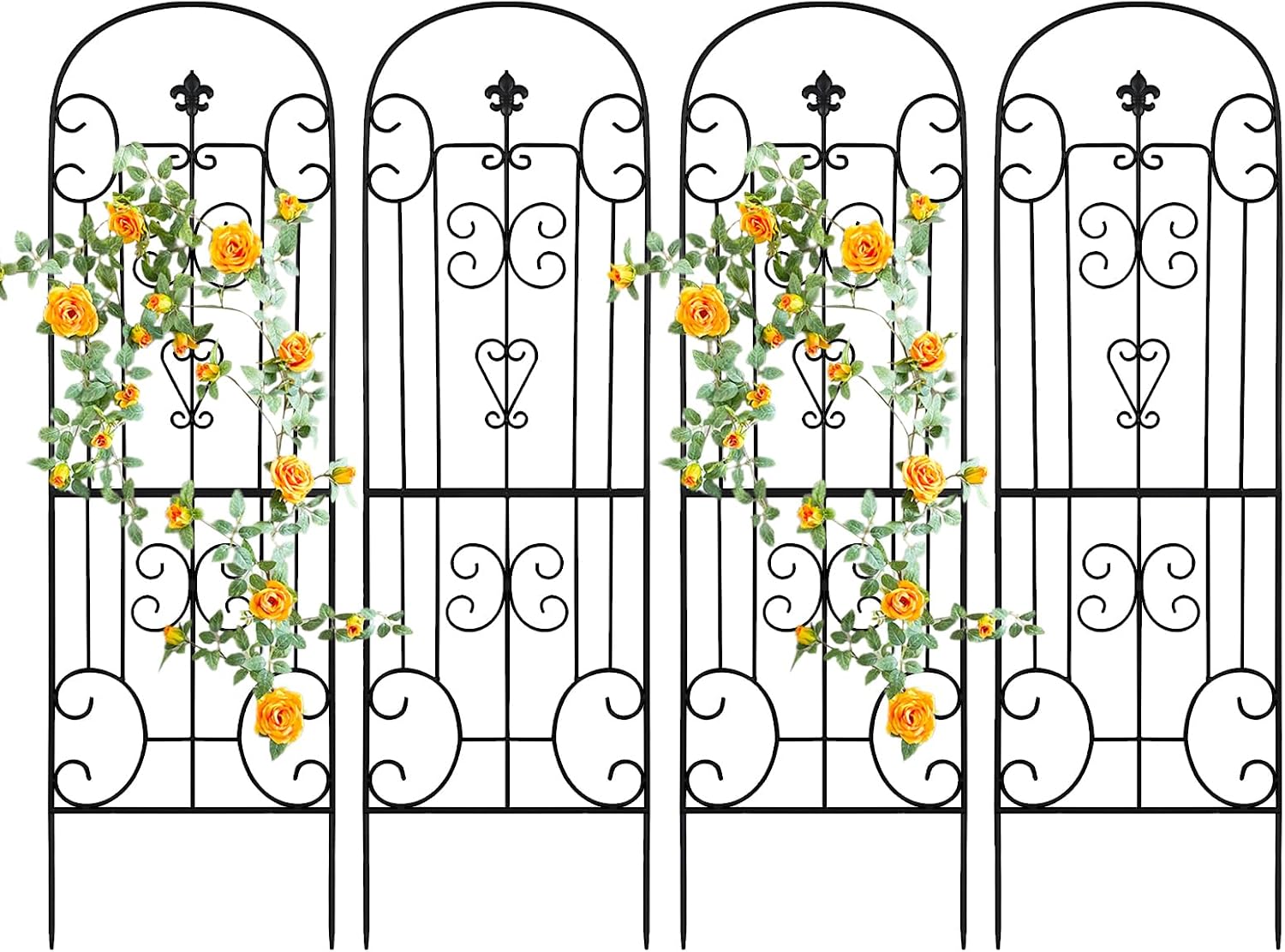- Heavy Duty & Elegant Decor: Our tall vine trellis is welded with thickened metal steel, hand-painting black powder coating and weathered finish to make it can be used for years to come. Ideal for summer to support flowering vines, and in fall or winter.The vertical section with aesthetic design adds a stylish and elegant touch to your yard. Our decorative garden trellis for climbing plants outdoor comes in decorative patterns, adding interest and variety to your garden, balcony, yard, or patio