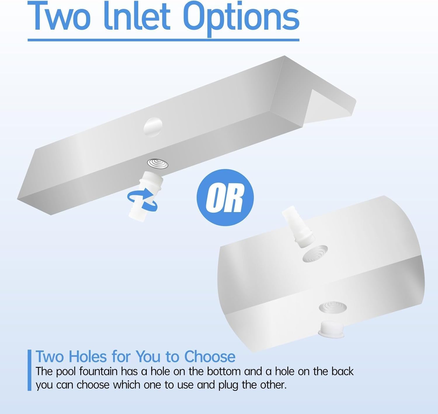 - 【Easy to Install】The pool fountain offers flexible installation options to suit different needs. There are two inlet locations - on the back or bottom of the unit. Users can choose from two installation methods: embedded, external waterfall. This versatility allows the fountain to be installed in various environments like gardens, patios, pools, and rockeries.