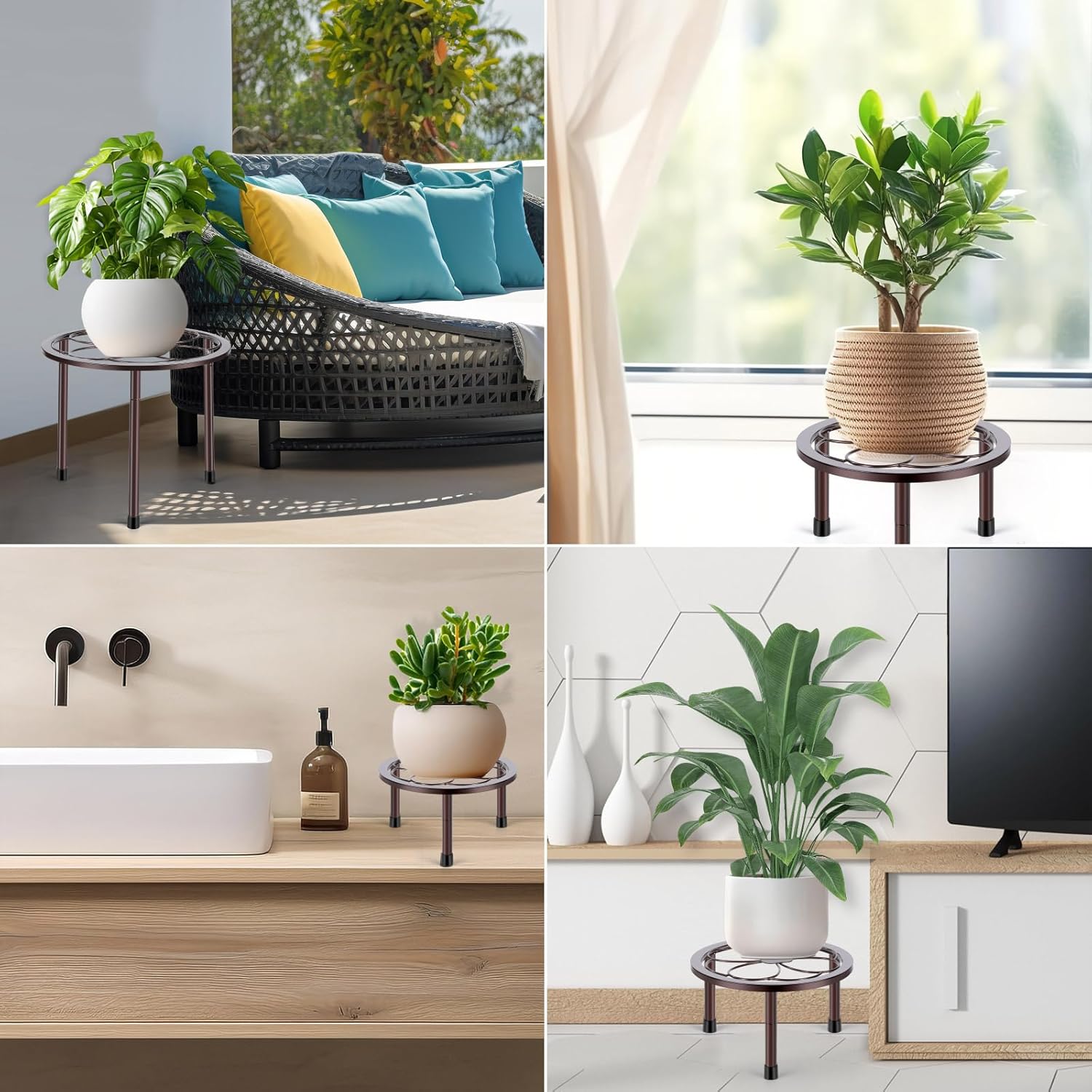 - 【Clearly Defined Layers】This set of metal plant bases includes a variety of sizes and heights, suitable for different types of plants and pots. The varying heights create visual layers, enhancing the aesthetic and adding individuality to the space, and can also serve as a decorative element in home or garden spaces.
