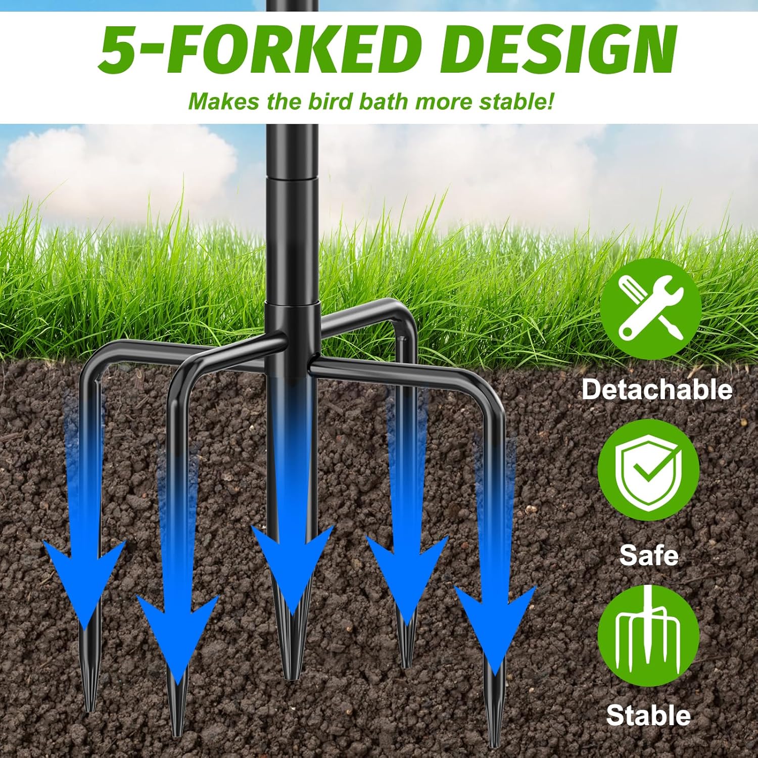 - Upgraded Sturdy Base:The bird bath is made from metal material, tall bird bath has 5-insert ground insert, more stable, not easily blown over by the wind