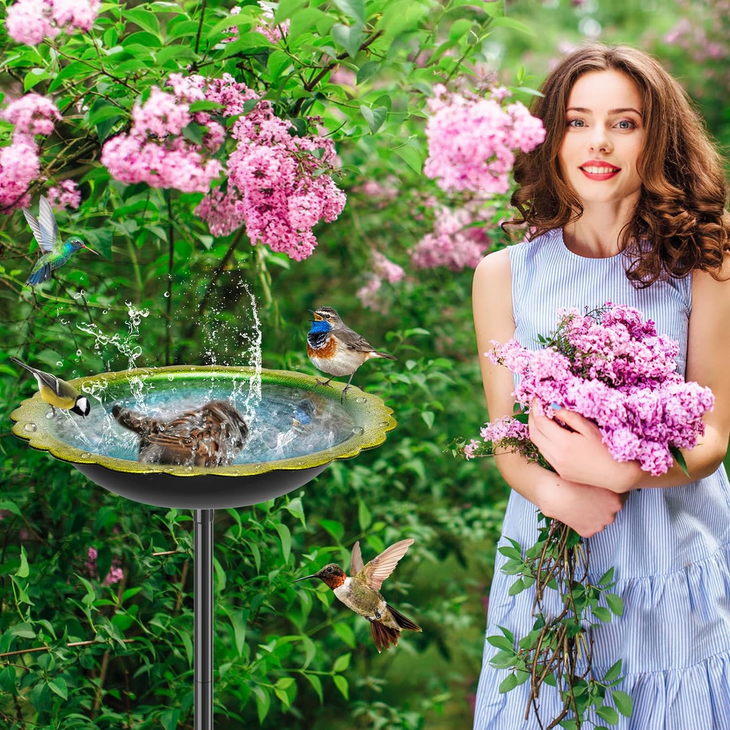 - Bright colors:The green color easily attracts birds for bathing and complements the flowers and plants, creating a more natural and pleasant environment. Itβs sure to become a striking focal point in your outdoor space
