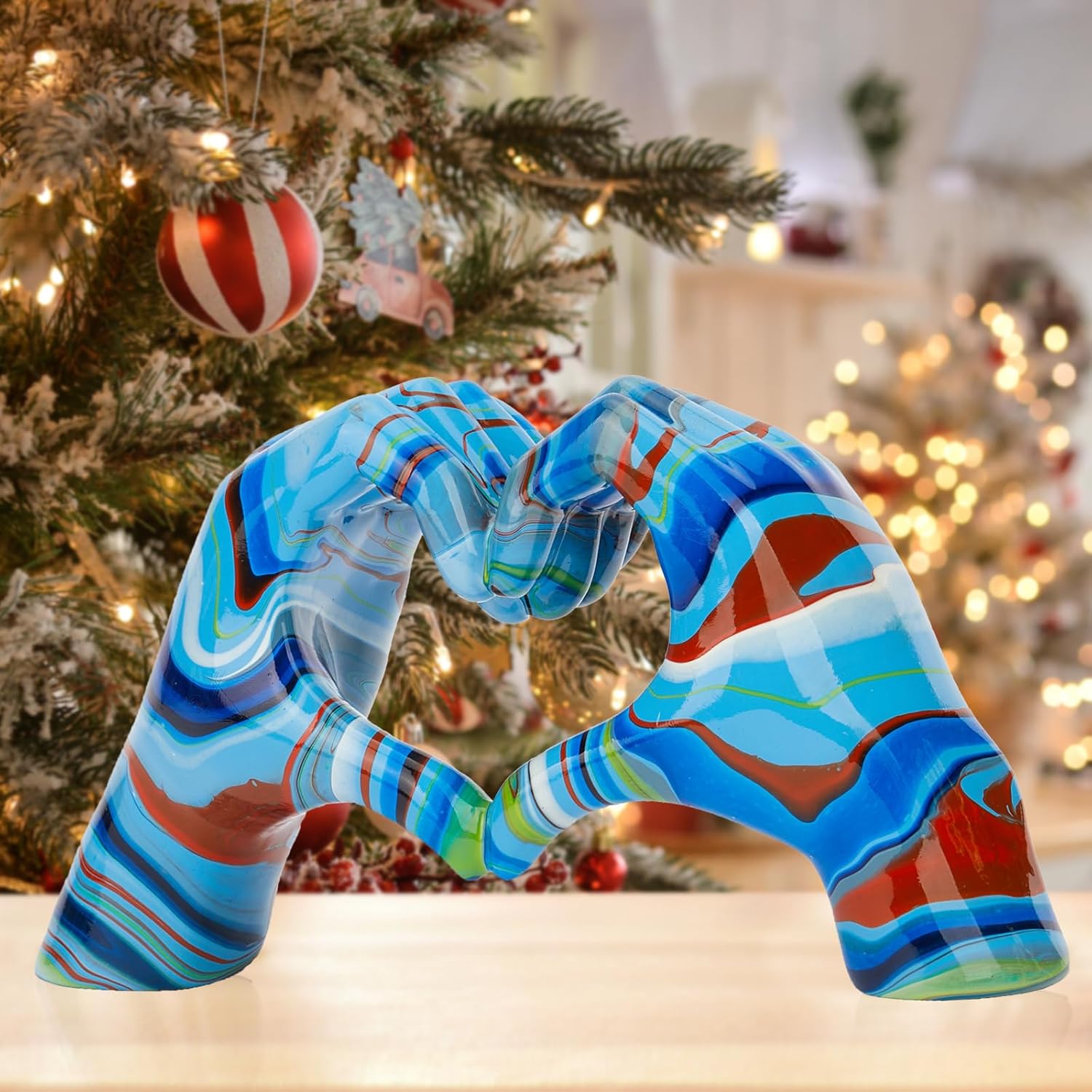 - [HEART HANDED SCULPTURE HOME DECOR]: Hand heart statue adopts sweet love gesture sculpture design; Nordic minimalist style resin handicrafts, love ornaments, modern love sign heart shape finger gesture statue, wedding for couple anniversary couple figurine. It is a whole pendulum and cannot be disassembled. Statue is perfect for home decor, room decoration, bedroom decoration, office decoration, living room decoration, hotel decoration, apartment decoration.