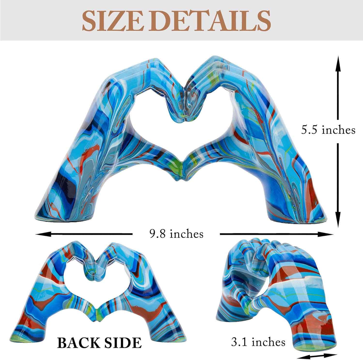 - [GESTURE DESK STATUES PREFECT SIZE]: Heart gesture sculpture size: 9.8 inches long * 3.1 inches wide * 5.5 inches high. The hand statues size is suitable for a bookshelf, coffee table, desktop, fireplace, Mantelpiece, TV cabinet, entertainment center, workplace, etc.