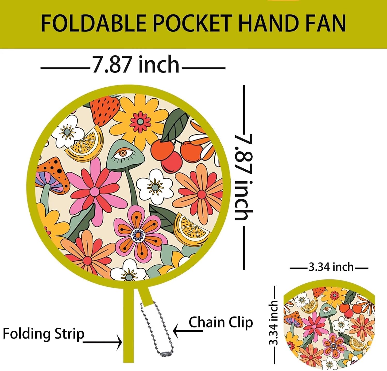 - 【PURSE FANS】Pop out with 7.8 inches circle, coil up in 2.8 inches. Great handheld fans for women foldable in purse