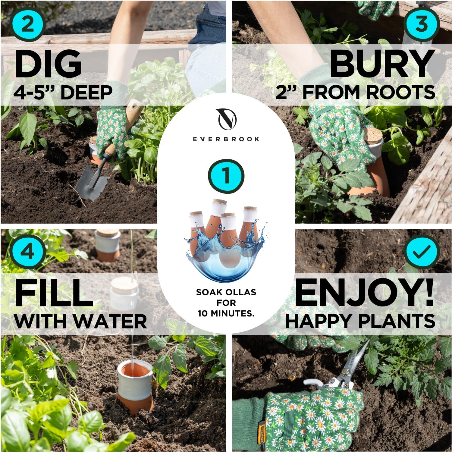 - EASY TO USE - 1. Soak Olla Pots For 10 Minutes 2. Bury Your Olla Up To Neck And 2 Inches From Root. 3. Fill with Water. 4. Plants Attach To Clay Wall Over Time. 5. Watch Plants Thrive. Enjoy Your New Olla Watering Method.