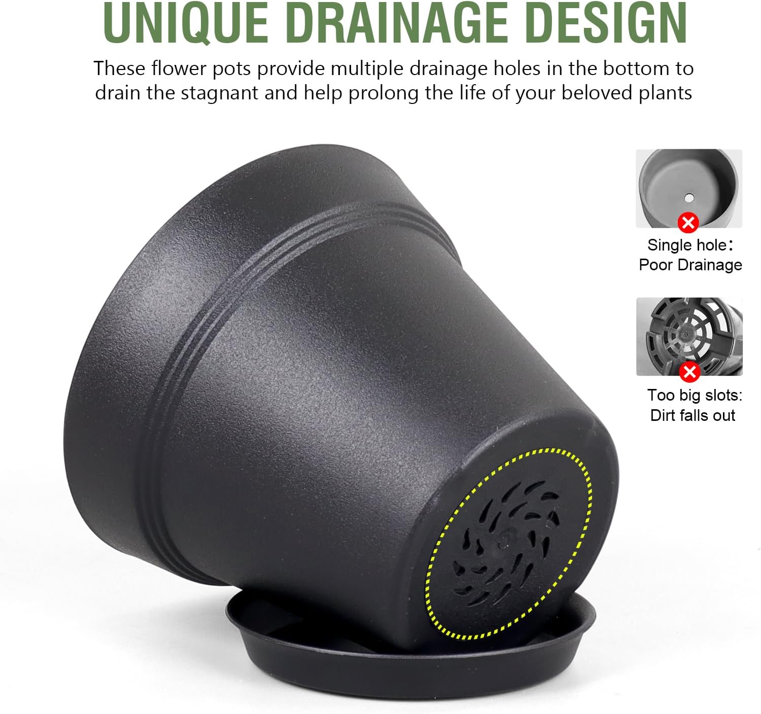 - 【Drainage Holes and Trays】Each plant pot features well-designed drainage holes at the bottom to ensure proper water flow. Additionally, saucers catch excess water, keeping your growing area clean and tidy while also ensuring that your plants remain hydrated without becoming waterlogged.