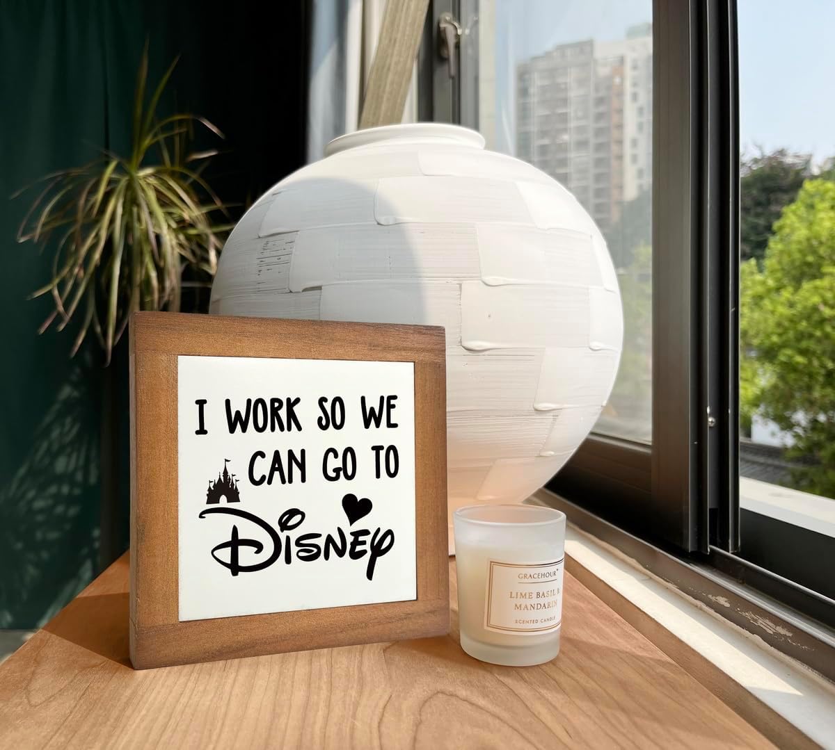 Inspirational Wood Signs, Box Wood Plaques Desk Décor, Decorative Plaques and Signs, Rustic Office Decor Art, Motivational Office Desk Decoration, Farmhouse Home Decor, I Work So We Can Go to D