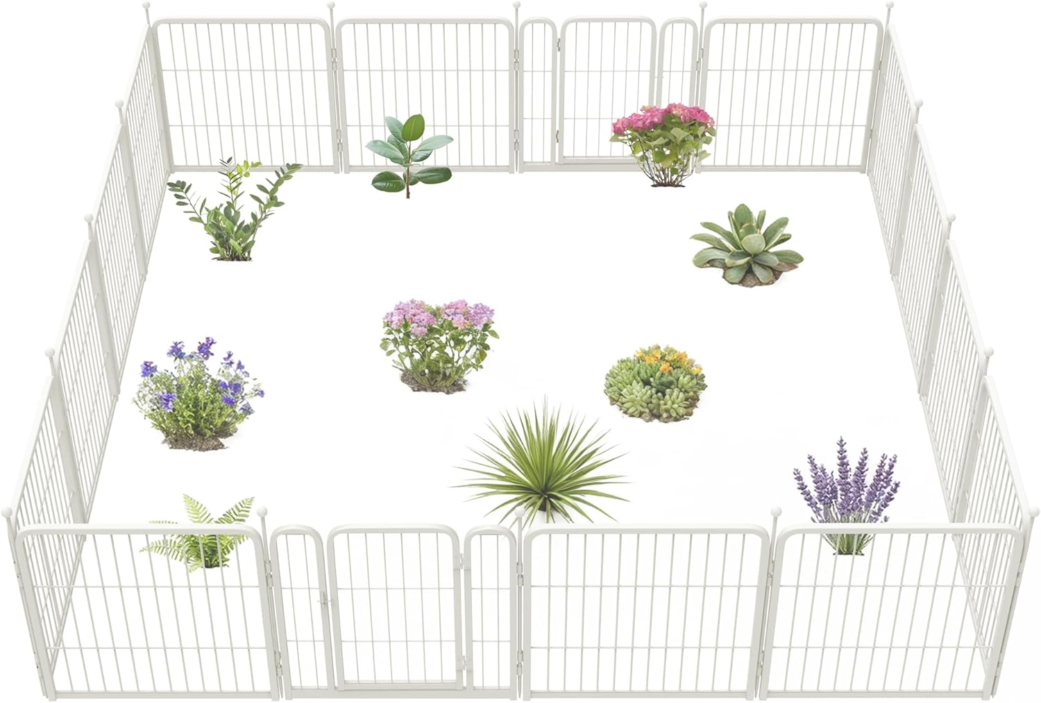 FXW Garden Fence Outdoor for The Yard – 24in(H) x 30.4ft(L) Heavy Duty Metal Animal Barrier for Dog and Rabbit, Decorative Dog Fence, 16 Panels, White