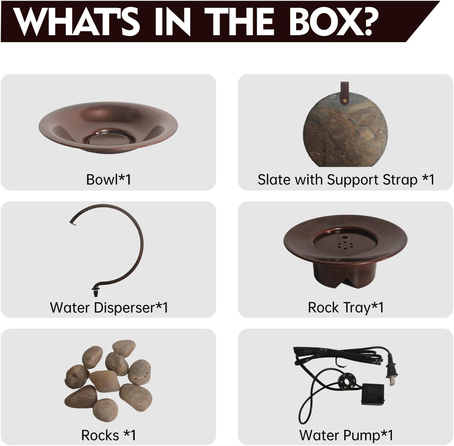 - 【High Quality Material】The size of home fountain is about W12.6" x H13.4", made of high quality aluminum alloy and nature slate material. The unique hanging slate design and brown base make the modern fountain decor more high-end.(Notice: the slate is natural and may differ from the photos)