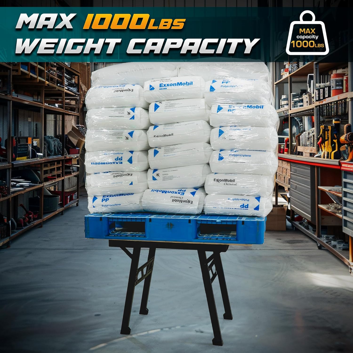 - [Sturdy and Lightweight]:4 sturdy metal legs with bases ensure that the work table will not tip over when in use. With a max weight capacity of 1000 lbs, workbench can easily handle heavy-duty tasks. But foldable work table only weighs 23lb.