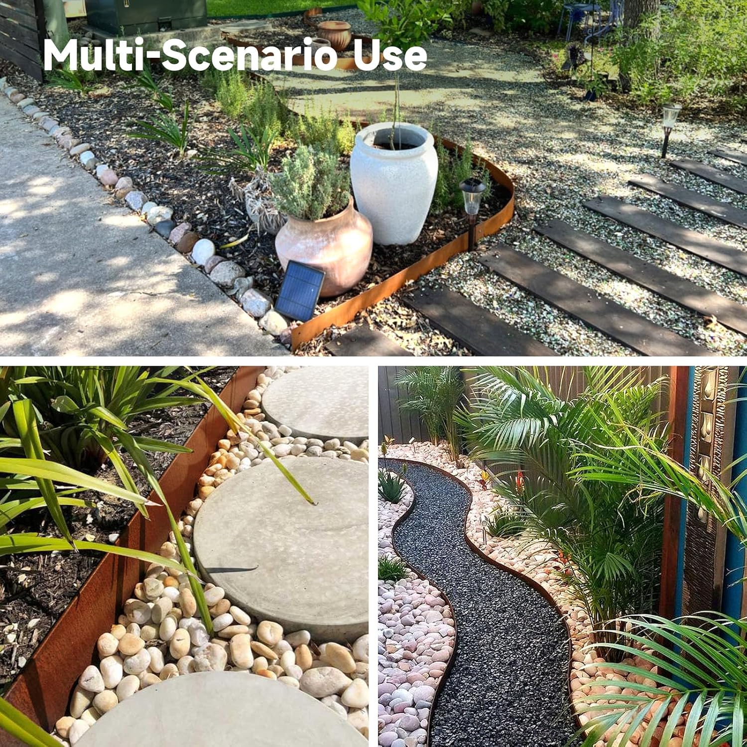 - [MULTIPLE USE]: Steel landscape edging is suitable for gardens, patios, paths, planting, farmland, forestry and any other place where you need to separate areas, it effectively prevents grass roots and weeds from spreading and maintains a neat landscape.