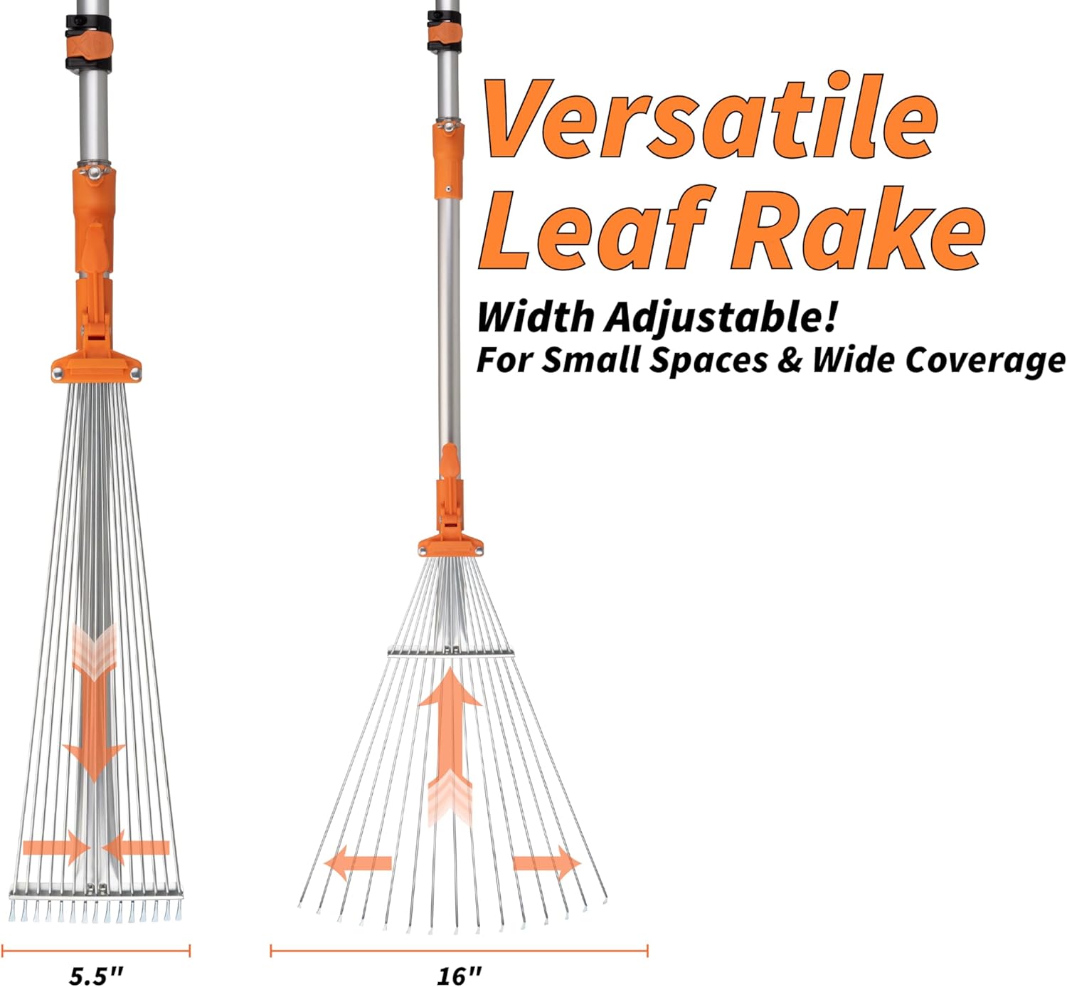 - RAKING YOUR ROOF HAS NEVER BEEN EASIER » This collapsible rake with telescopic pole extends up to 30ft, allowing you to clear leaves and scrap off your roof safely from the ground. Its wide rake head covers large areas efficiently, while the collapsible design reaches tight spaces and ensures easy storage. Designed for durability, our rake attachment stays firmly in place without falling off during use. Perfect for gardening, roof cleaning, and lawns, it works without a ladder or special tools.