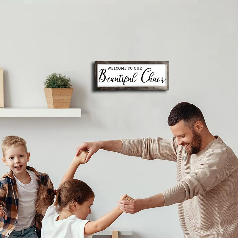 - Farmhouse Sign : Rustic wood signs with inspirational quotes " Welcome To Our Beautiful Chaos " - wooden texture, farmhouse frame, and easy wall hanging plaque.Perfect for our home or as an unforgettable gift.