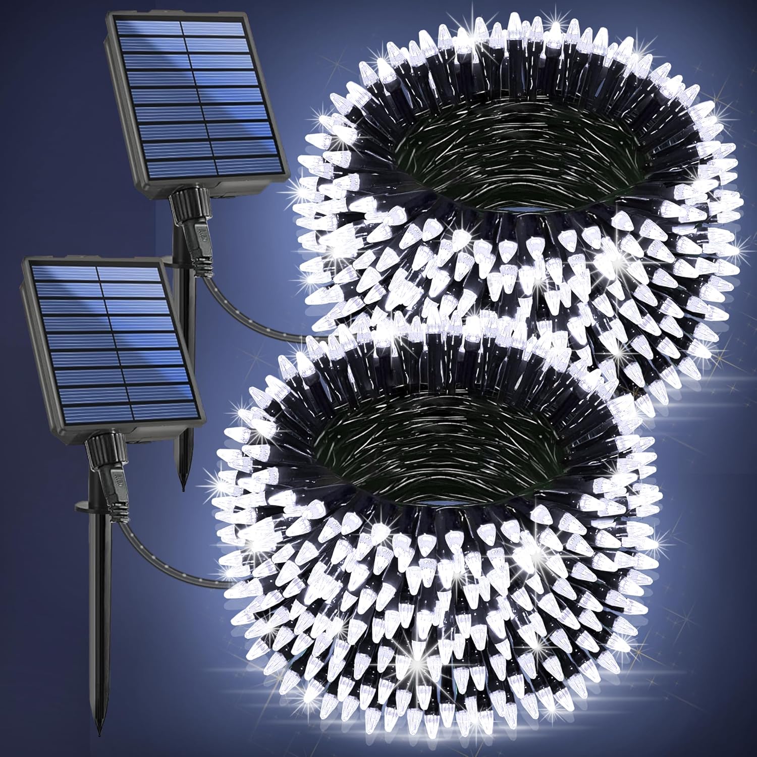 2-Pack 200FT Solar String Lights for Outside, 600 LED Extra-Bright Solar Light Outdoor with 19 Modes & Timer, Waterproof Fairy Solar Lights for Garden Patio Tree Christmas Decorations (Cool White)
