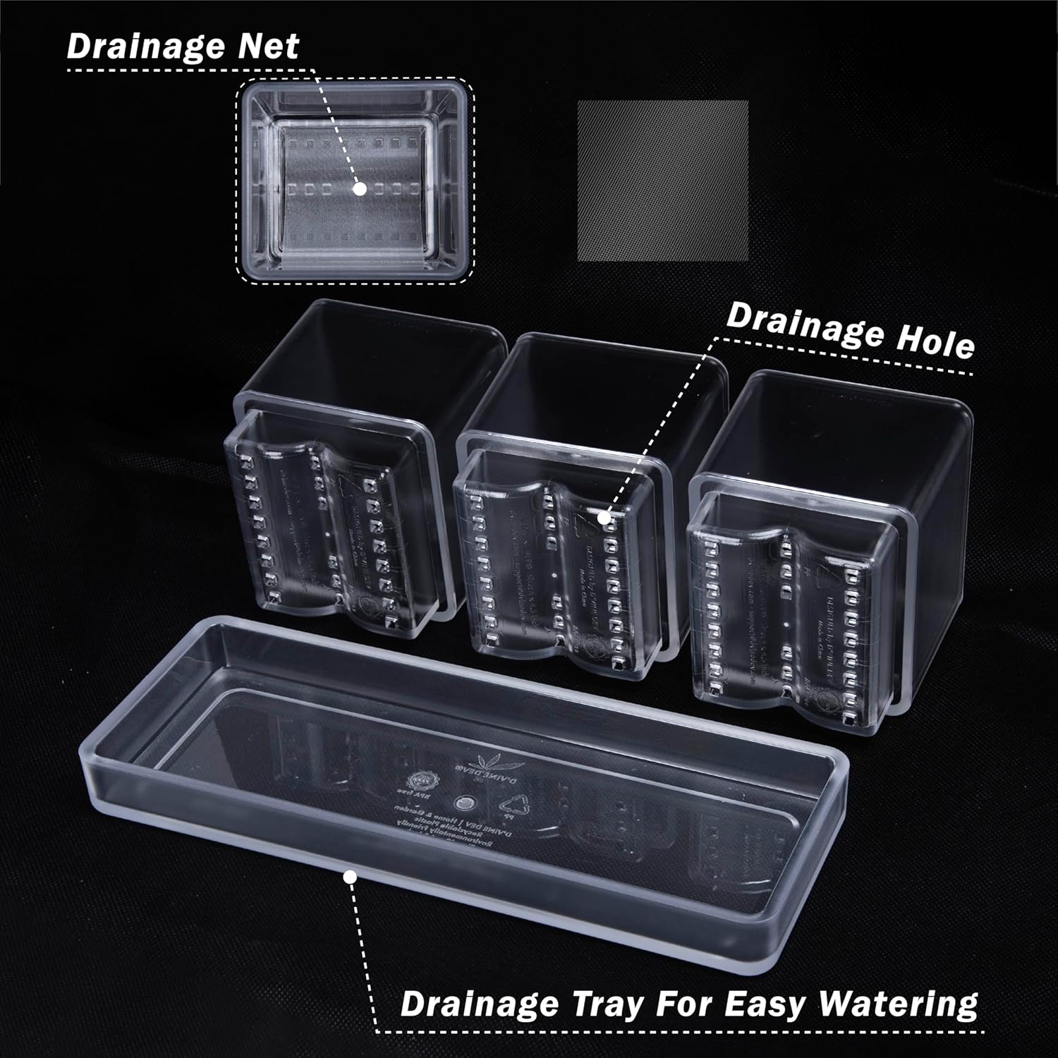 D'vine Dev Herb Garden Planter Set, Plastic Plant Pots with Drainage and Saucer, Indoor Succulent Cactus Vegetable Pot for Windowsill, Garden Balcony, Clear, Set of 1, 76-V-D-1