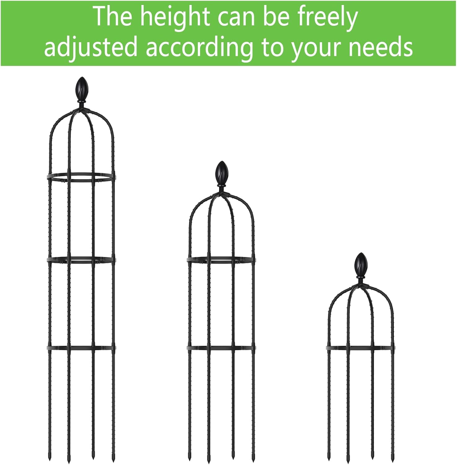 - Package Contains: 2 Pack 57” Tall Garden Obelisk Trellis with 3 adjustable durable plastic support rings, come with extra 1 plant ties and 1 trowel garden tool for climbing Plants.