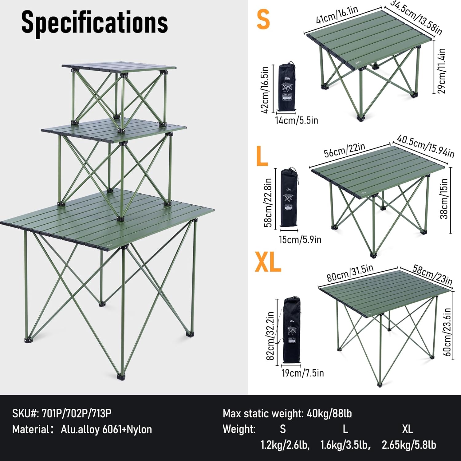 - Lightweight, made of aerospace-grade aluminum alloy, only 5.8 lbs; Max Load 88 lbs; Unlike wooden or nylon-top tables, this table is durable, waterproof, corrosion-resistant, easy to clean; Sturdy joints and anti-slip feet keep the table stable, with legs that wonβt fold, bend, or slip on any terrain; Very easy to set up, just open the base frame and attach the tabletop, enjoy your leisure time in seconds, video guide available on this page.