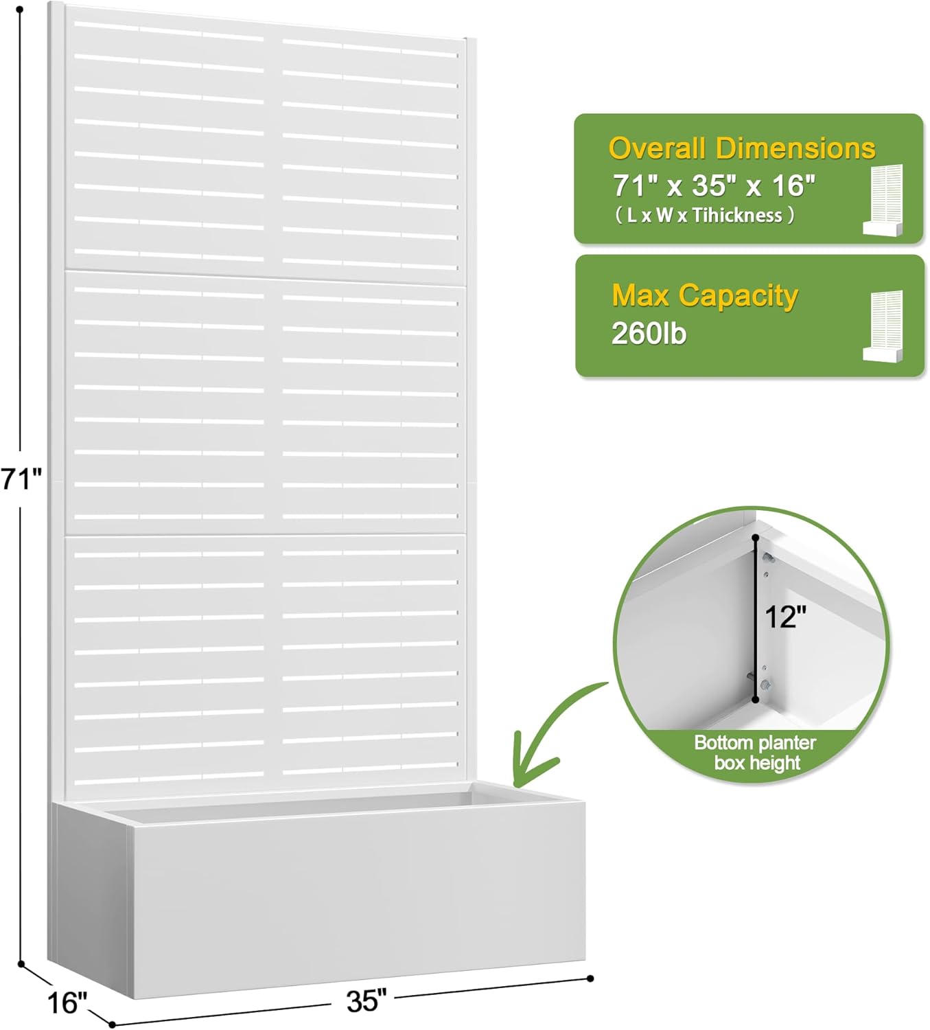 FENCY Metal Raised Garden Bed with Trellis, Metal Planter Box with Trellis, Garden Box for Climbing Plants Vegetable, 35" Lx16 Wx71 H Garden Bed with Drainage Holes(White-Louvered)