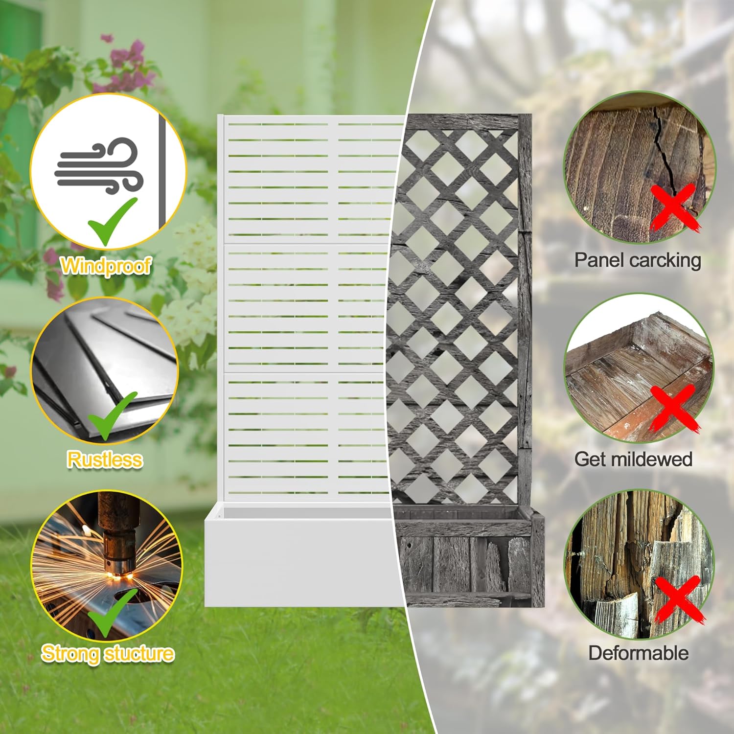 - Versatile Design: This metal planter with a trellis serves multiple purposes, making it the ideal choice for your garden. Use it as a beautiful flower stand or as an outdoor privacy screen.