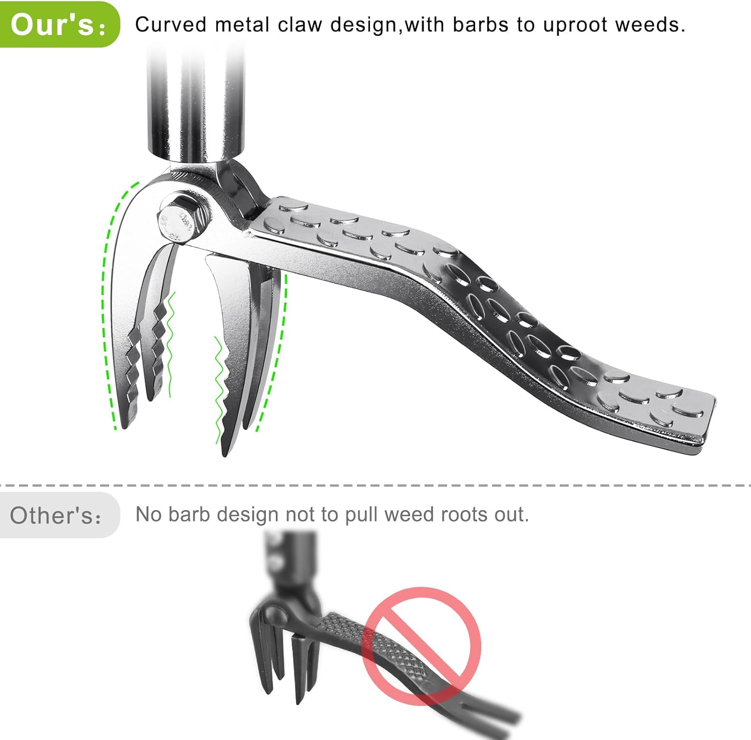 - User-Friendly Operation: Simply center the tool over the weed, step on the foot pedal to drive the claws into the ground, and tilt the handle to pull out the weed with its roots.