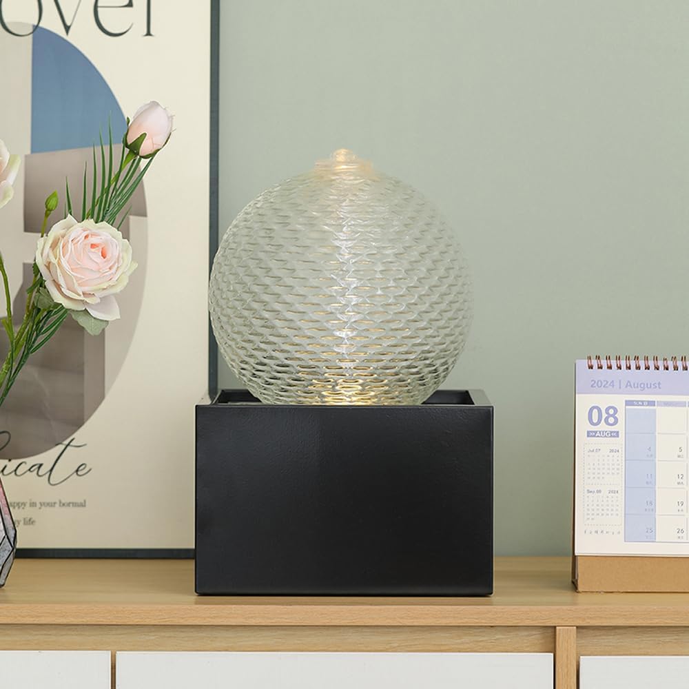 Indoor Water Feature Tabletop Ceramic Fountain Home Kitchen Office Decoration Modern Design Style (Black biger Size)