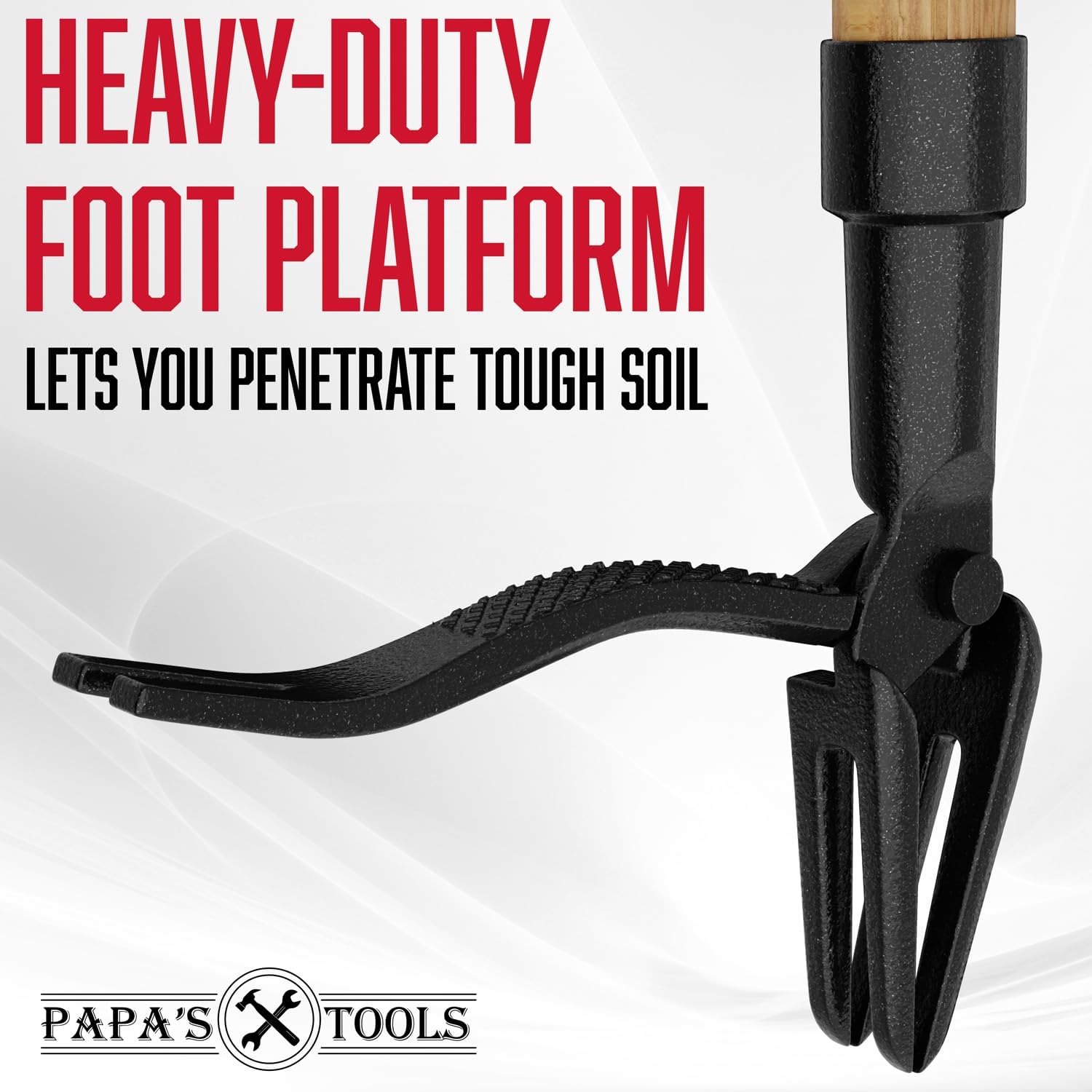 Papa's Tools Weeder - Stand Up Weed Puller Tool Made with Long Wooden Handle - Real Bamboo & 4-Claw Steel Head - Easily Remove Weeds Effortlessly Without The Need to Tug, Bend, Or Flex,