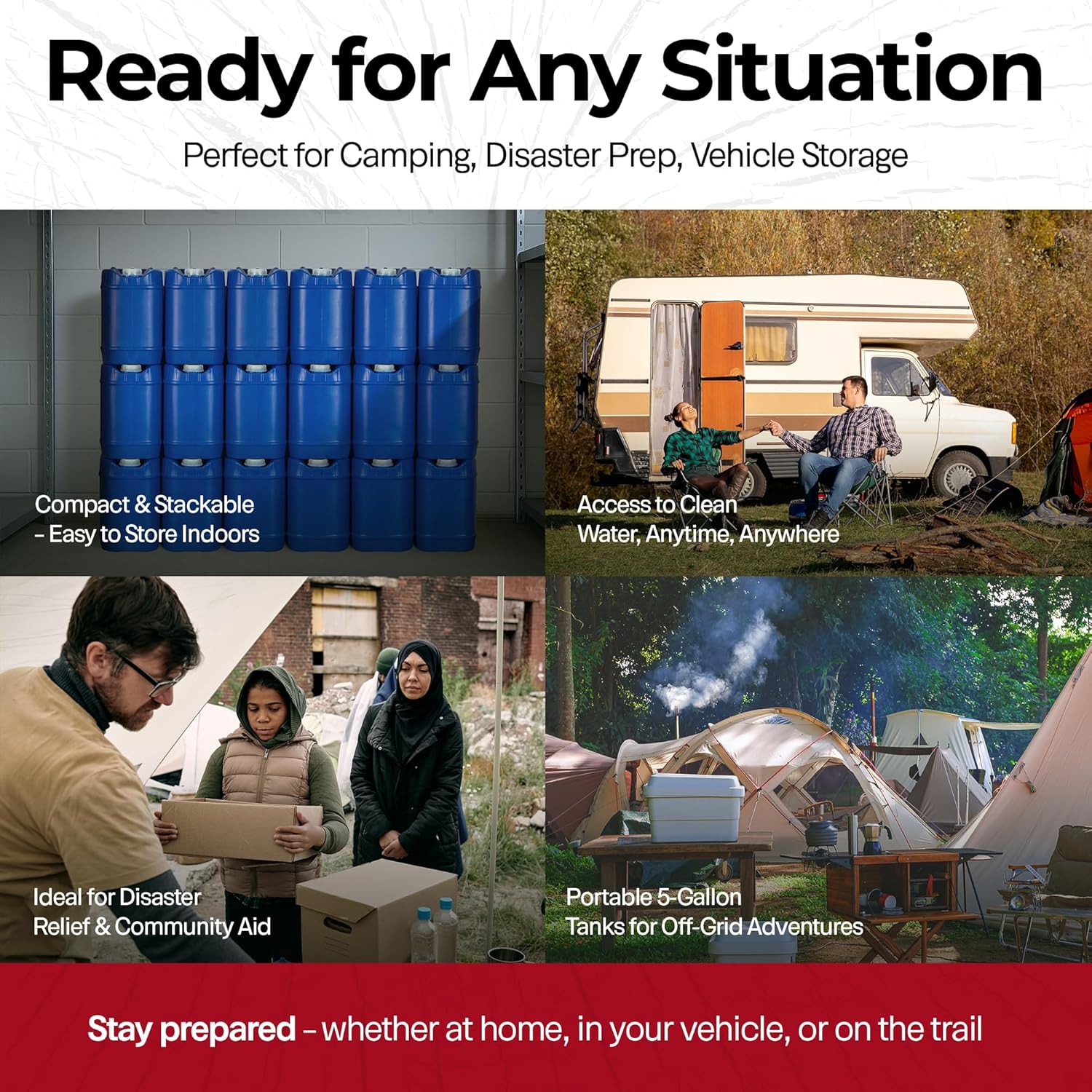 Emergency Water Storage Containers - 5 Gallon Each Water Storage Tank w/Lids + Spigot - Water Storage Container, Emergency Water Container, Survival Storage Tank - Stackable (30 Gallons (6 Tanks))