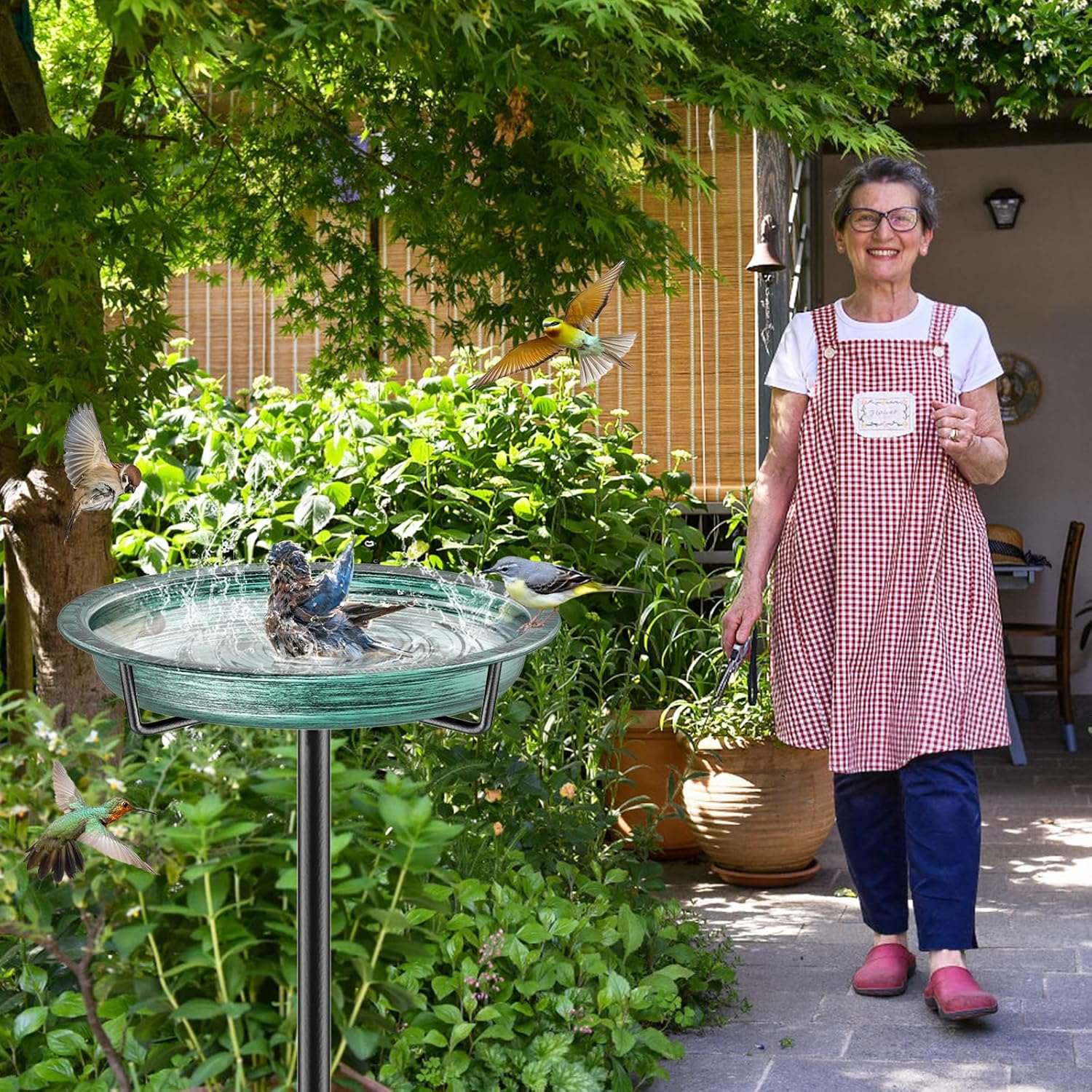 Bird Baths for Outdoors, Detachable Birdbaths for The Garden Clearance, Heavy Duty Freestanding Bird Baths, Bird Bath Bowl Spa & Birdfeeder with Metal Stake Stand (Retro Green)