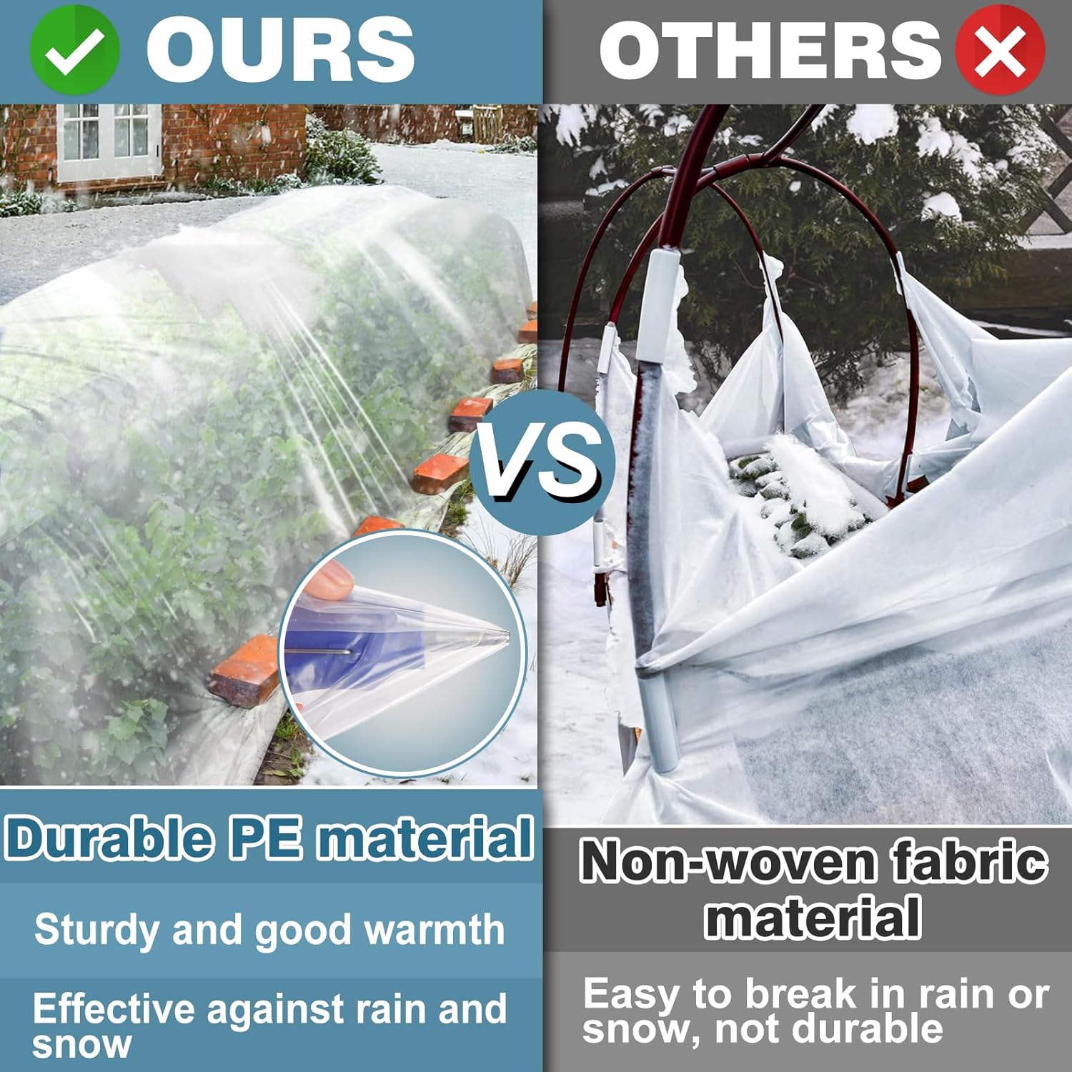 - Excellent Light Transmission: Our plastic sheeting is transparent, allowing light to pass through and ensuring plants receive ample sunlight for healthy growth. Additionally, the transparent cover provides visual access, enabling you to observe the frost protection effect on your plants.