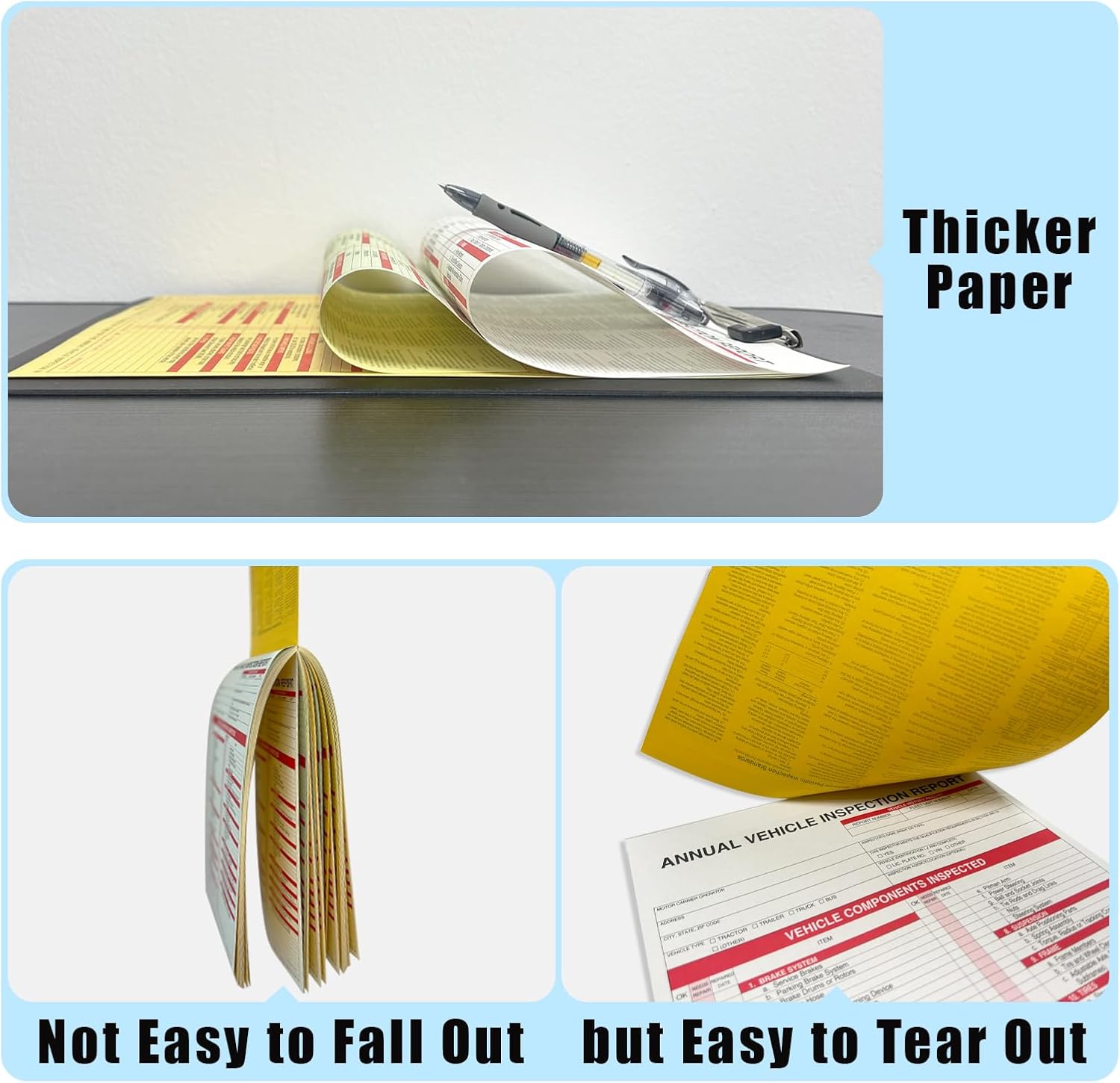 - Comprehensive & Convenient: The annual vehicle inspection reports include all the necessary categories for safety and compliance. Structured for clarity and ease of completion. Measuring 8.5" x 11.75", they are come in a snap-out, 3-ply carbonless format (original, duplicate, vehicle copy), making them easy to use and manage.