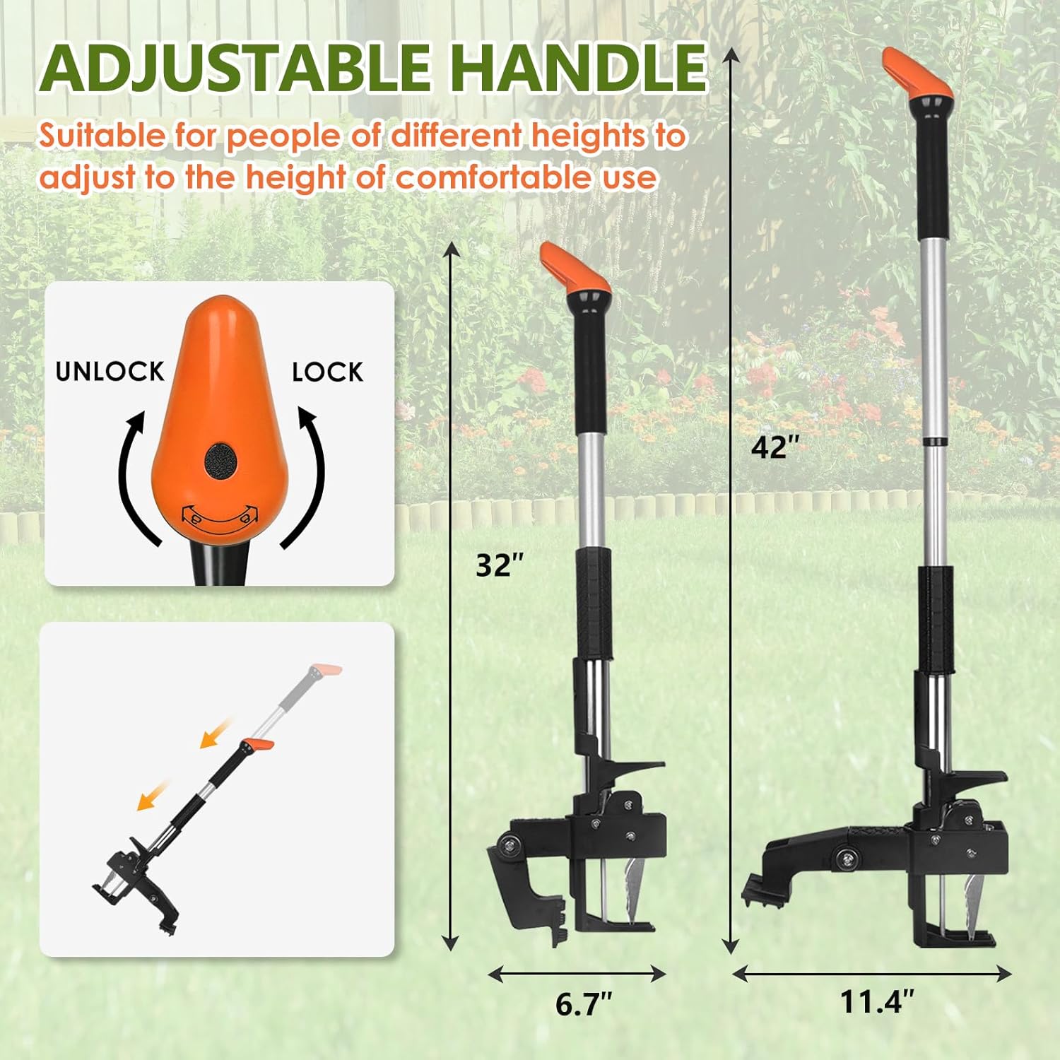 - MANUAL WEEDER TOOL -- Our Weed Puller comes with a handle with an adjustable length of 32.3 to 41.73 inches for a comfortable use for most users. Featuring an ergonomic design that reduces stress on your back and wrists during weeding, making you more comfortable in your gardening endeavors. The handle is designed with a non-slip texture to maintain a firm grip even in wet environments, ensuring safety and convenience during use.