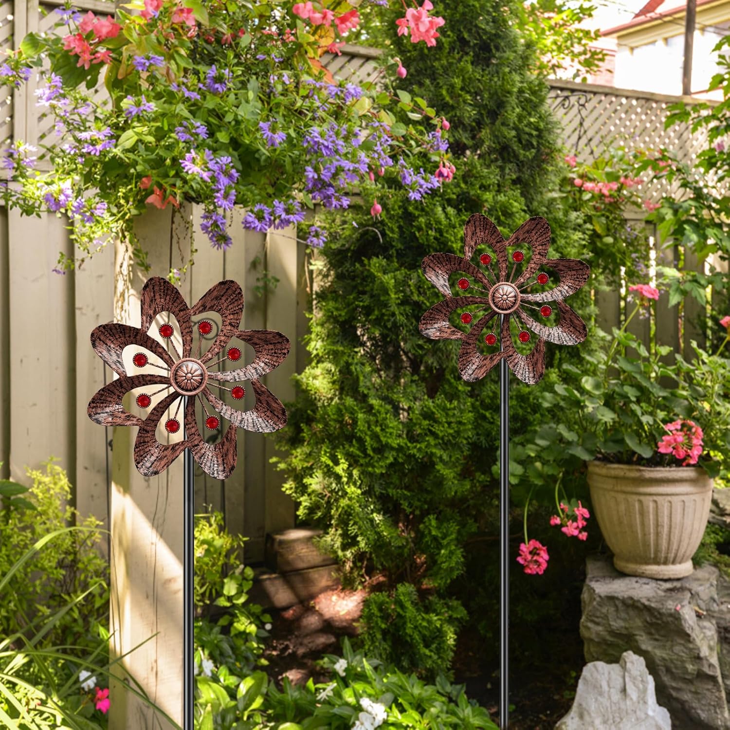 - Garden Wind Spinner Decoration:Yard wind spinners can add personality, The metal windmill rotates in the breeze, sparkling in the sun. It will bring much fun, color, and vitality to your garden, lawn, yard, pathway.