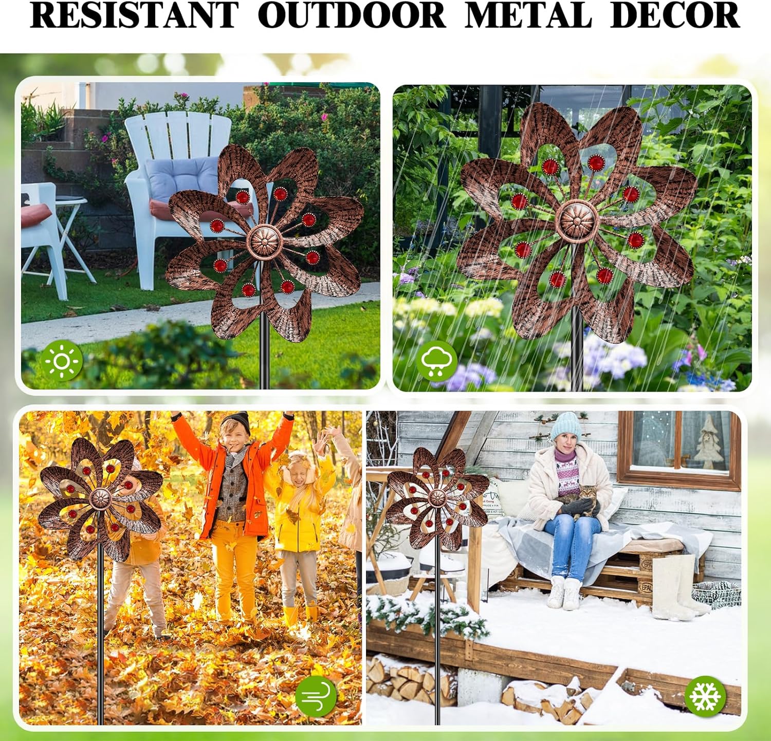 - Premium Materials: The garden wind spinner uses high-quality rotating bearings that can easily rotate in gentle winds. This outdoor wind sculpture is made of durable metal materials and treated with rust-proof paint coating, so it can withstand most weather conditions.