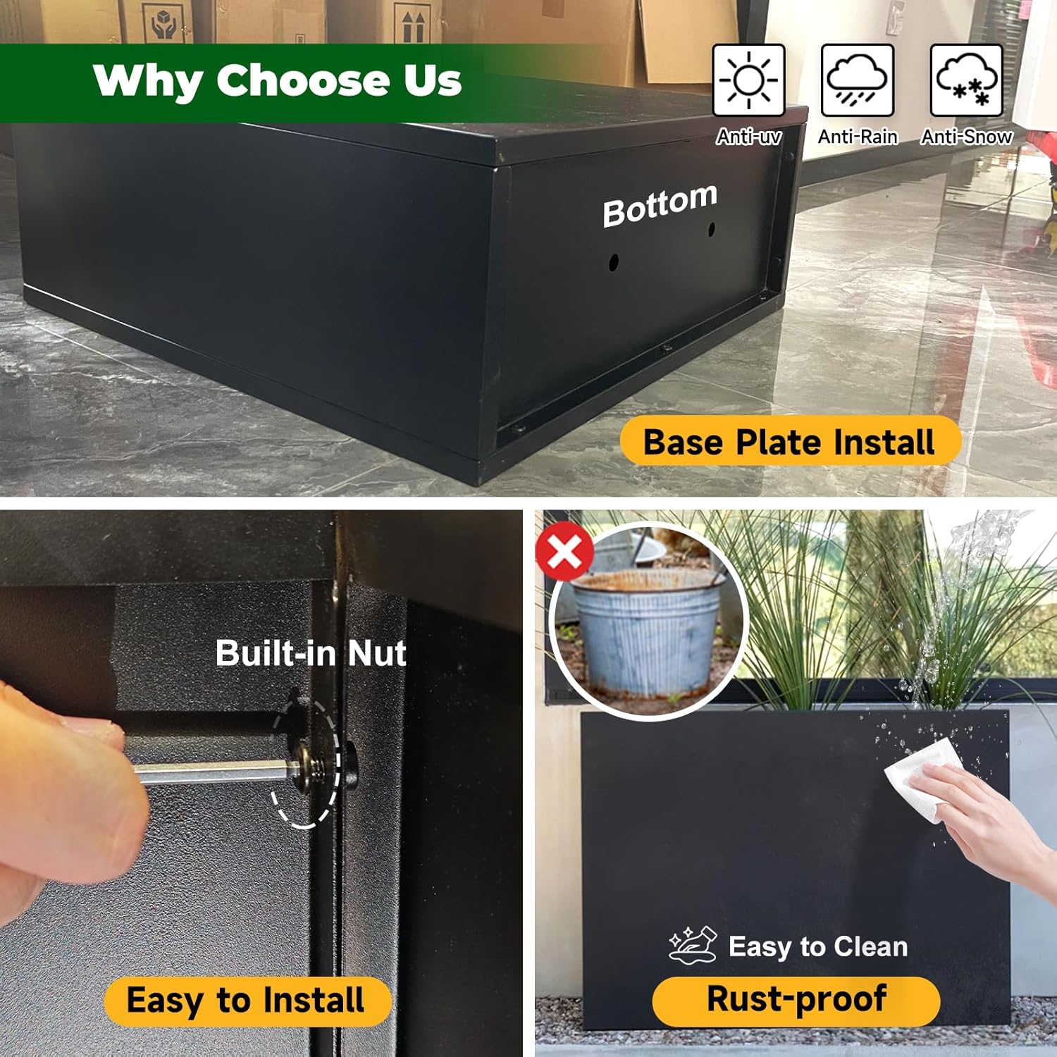 Galvanized Steel Metallic Heavy Planter for Outdoor Plants Metal Outdoor Planter Spliced Flower Box with Partitions for Outside,Indoor,Garden (Black, 24 * 12 * 24)