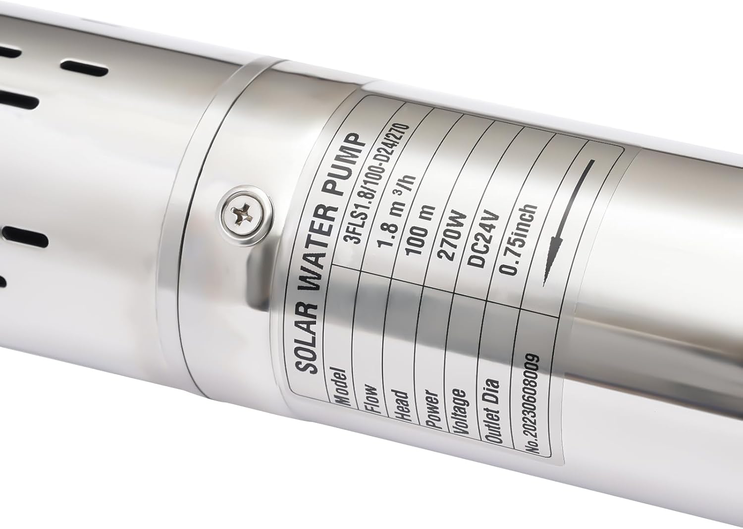 Solar Water Pump, 24V 270W 3In DC Submersible Pump Stainless Steel Deep Well Pump Irrigation Kits with MTTP Controller Float Switch for Home Industry, Garden Irrigation, Farm Ponds (24V 270W)