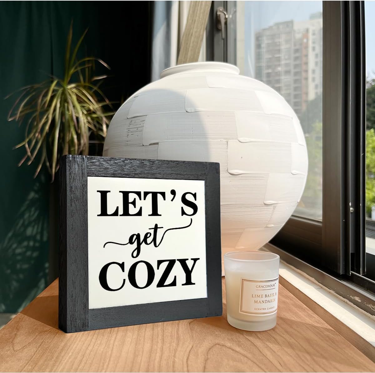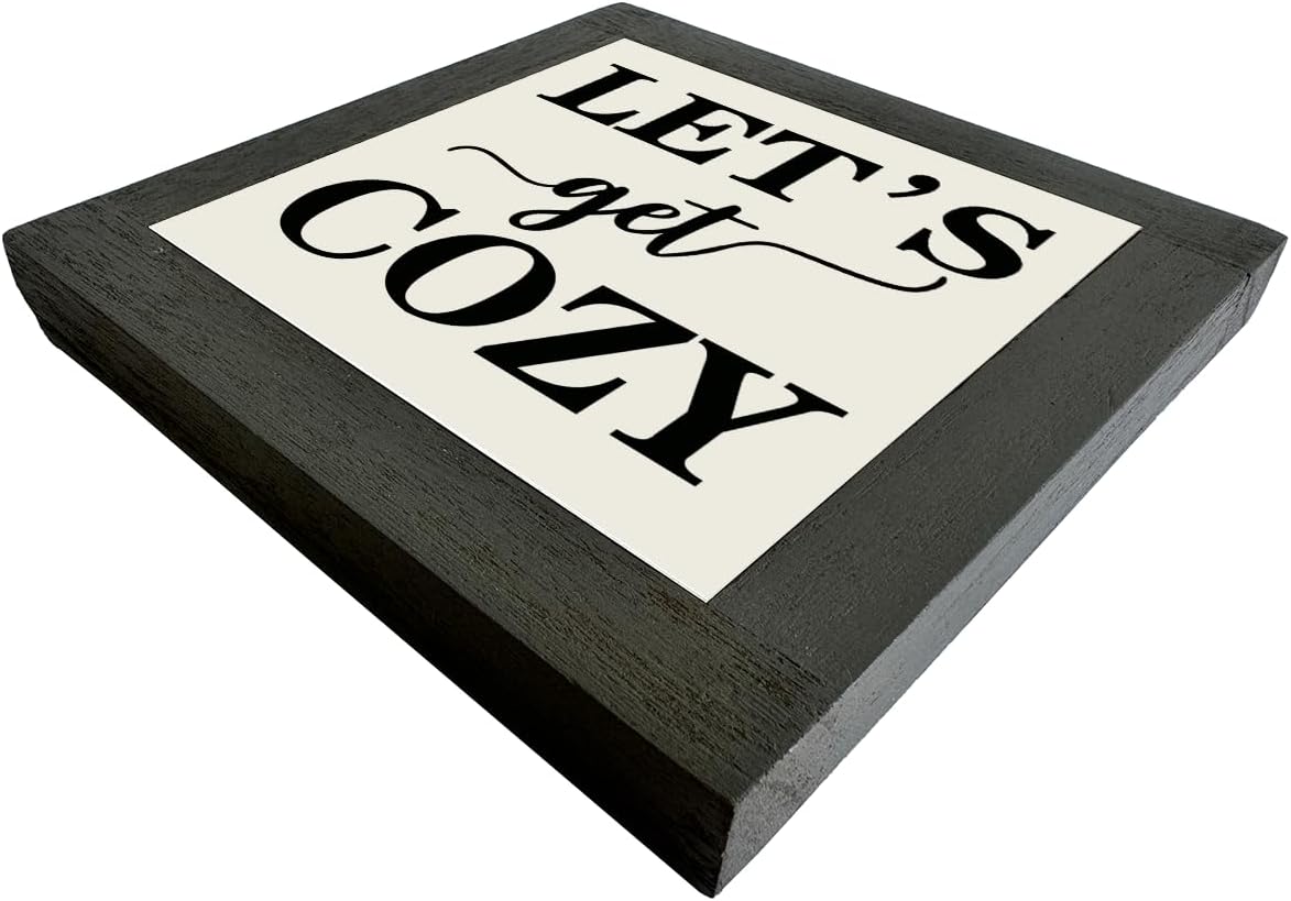 Inspirational Wood Signs, Box Wood Plaques Desk Décor, Farmhouse Home Decor Sign for Shelf, Family Table Decor for Kitchen Bedroom Dining Room, Living Room Decor, Housewarming Gift, Let's Get Cozy C