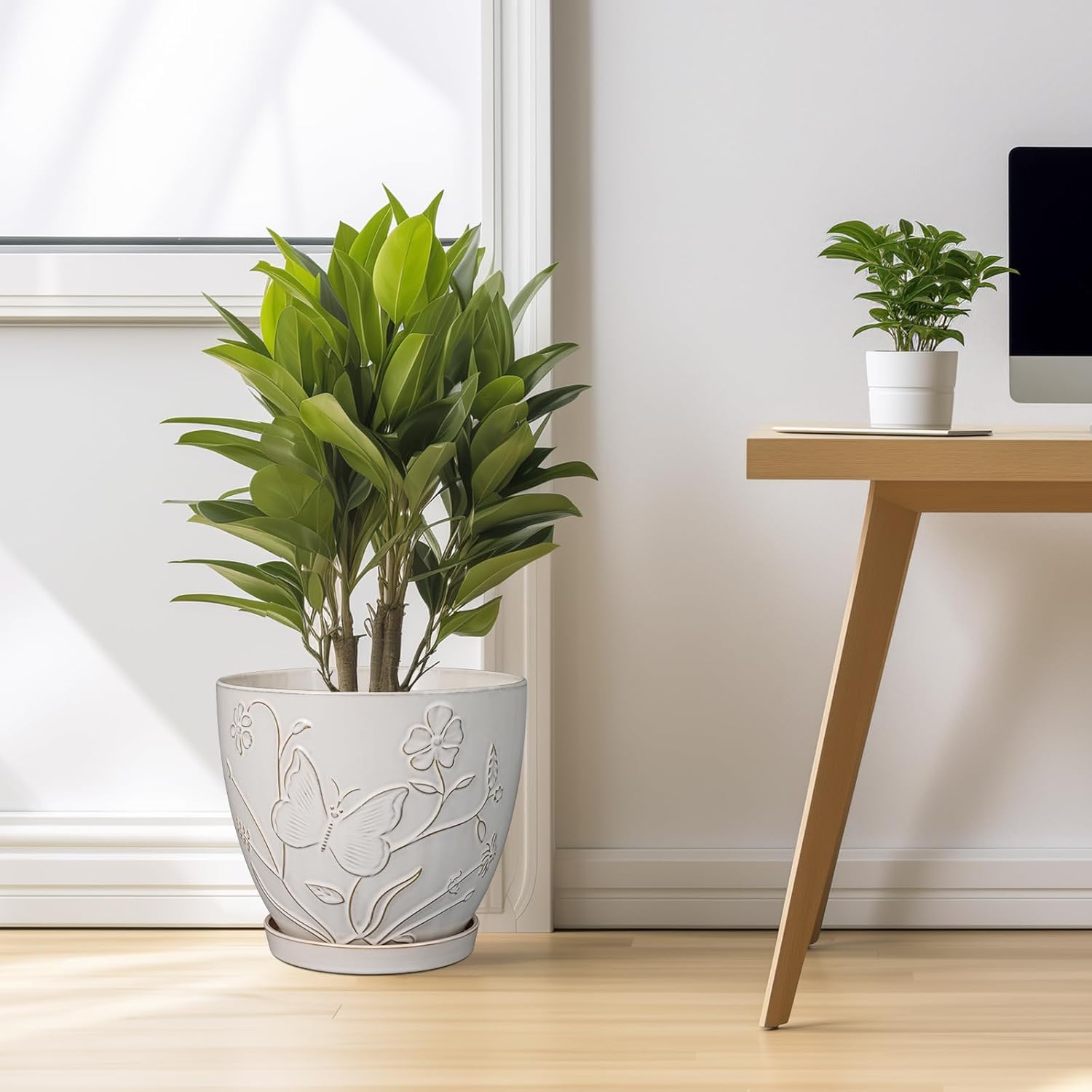 - Stylish Appearance: Our ceramic planter pot has a white main colour, a beautiful embossed butterflies and flowers pattern on the surface, elegant appearance making it ideal for home decor, garden decor and office decor