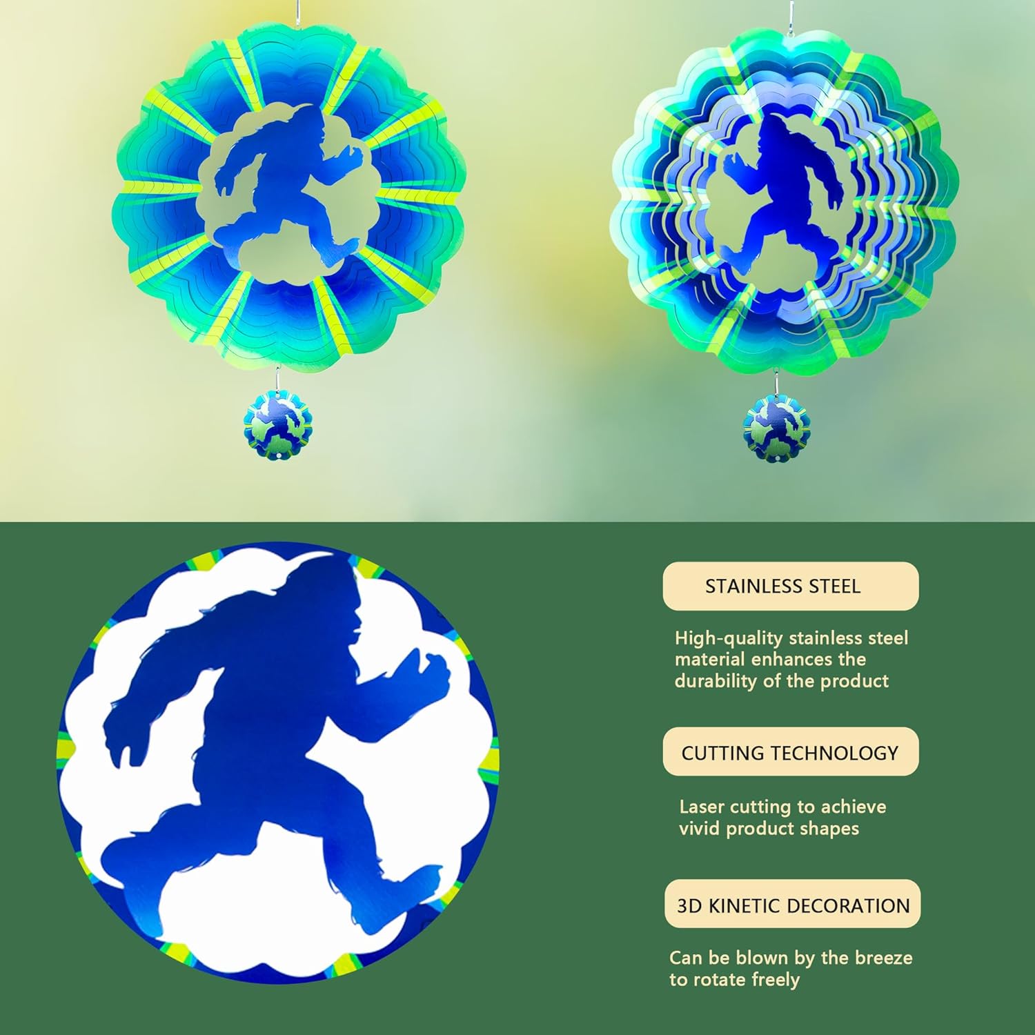 Bigfoot Gifts Sasquatch Yard Decor, for Dad Husband,12 inch Bigfoot 3D Hanging Wind Spinners Outdoor