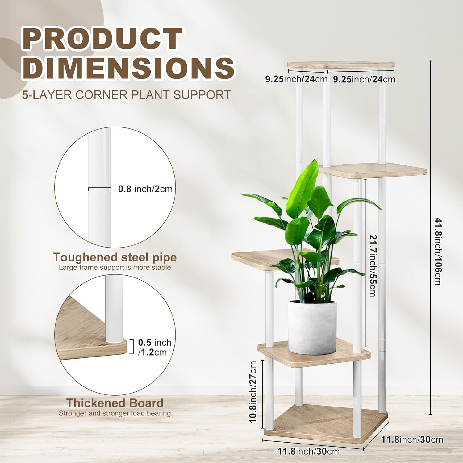 - More Sturdy & Durable: Upgraded quality Metal frame, equipped with thickened wood (MDF) reinforced base, our Plant Pot Stand has strong bearing capacity and stability, not easy to crack and deform