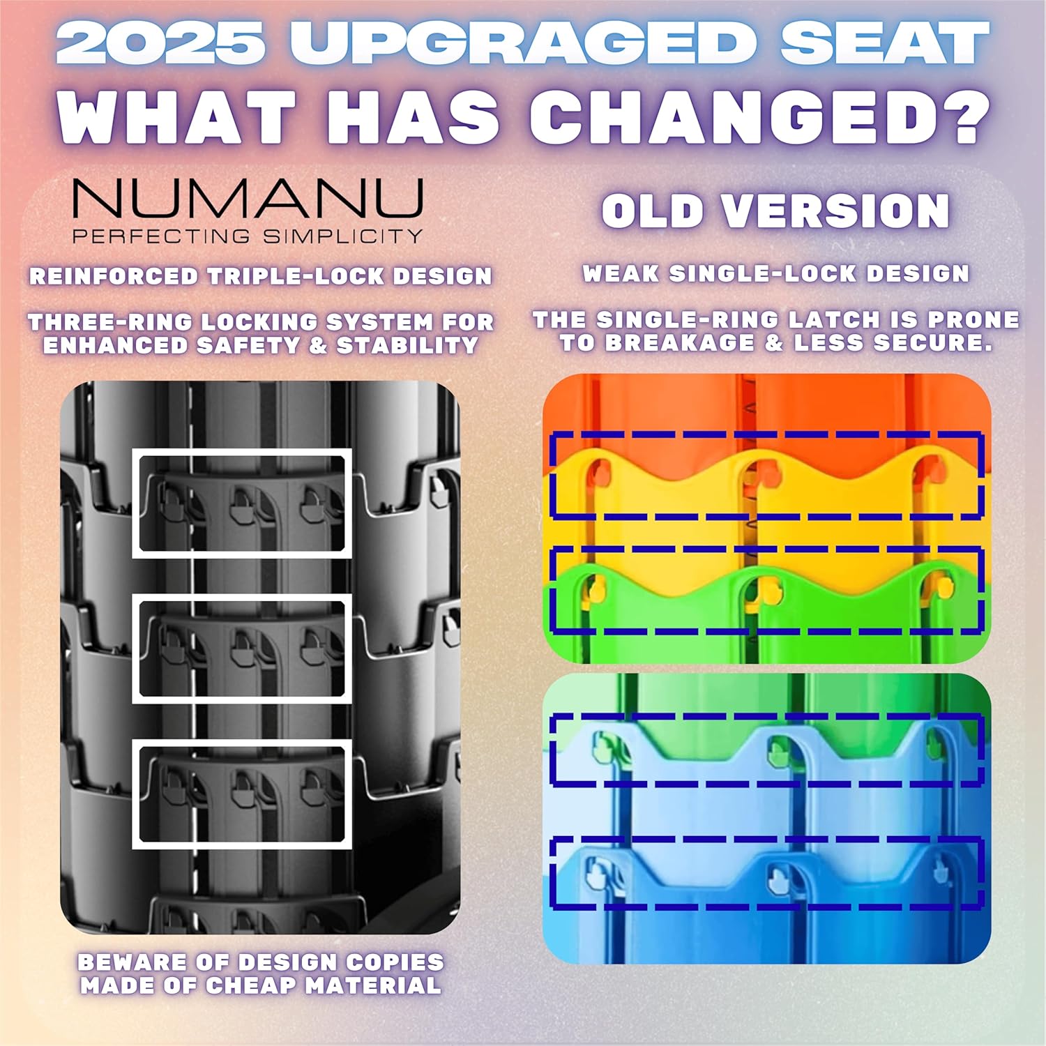 - 🔒【SELF-OPEN PREVENTION LOCK】Most Telescoping Stools do not properly lock and slip out unexpectedly while Collapsed / Closed. NUMANU's Telescopic Foldable Retractable Seat is always securely locked in place with our open-prevention Safety Lock.