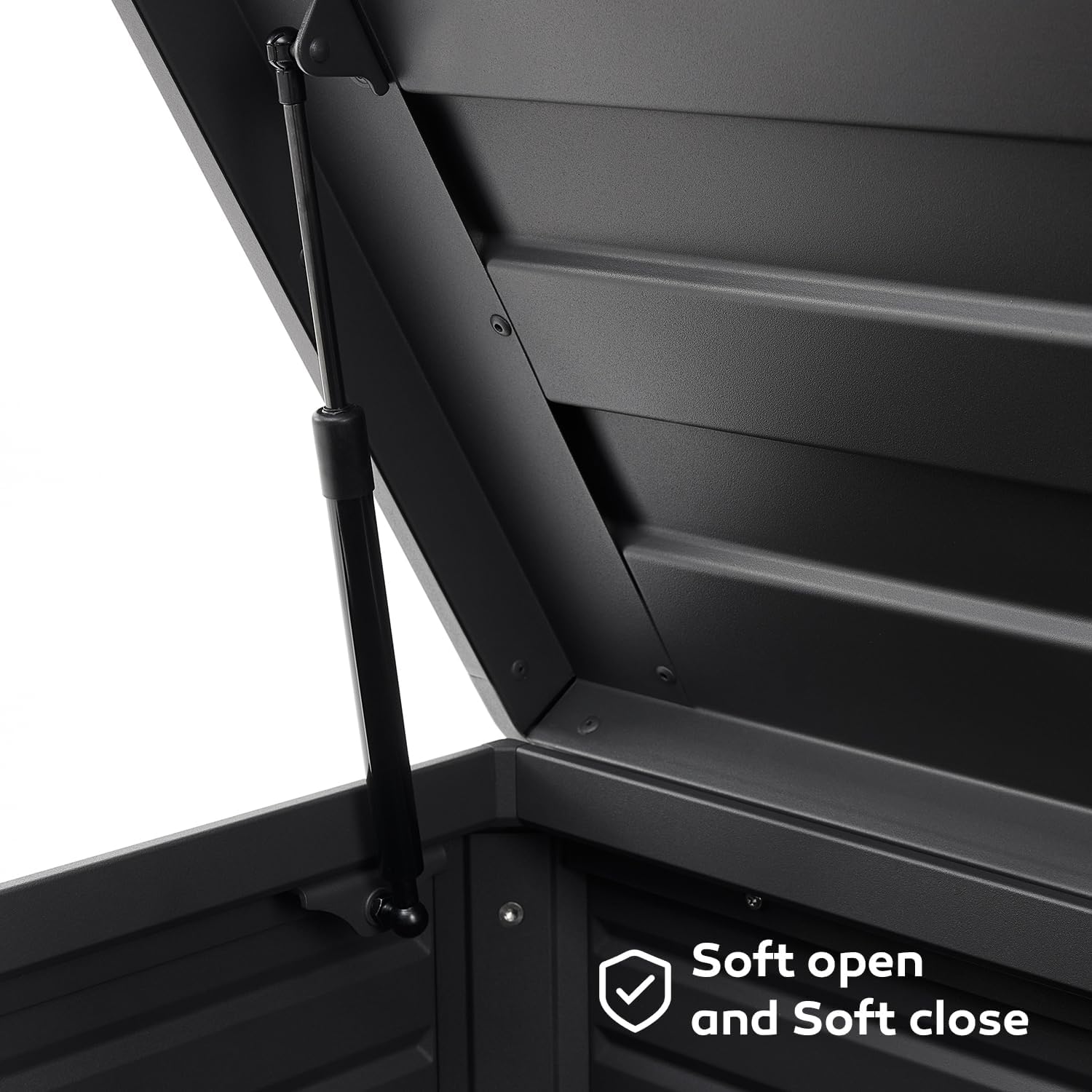 - Air-spring:Designed with a supported lift and soft closing lid, the Mirador Deck Box ensures safe and easy access to your stored items. This user-friendly feature prevents the lid from slamming shut, protecting your fingers and extending the life of the box. Experience the ease and safety of our innovative design.