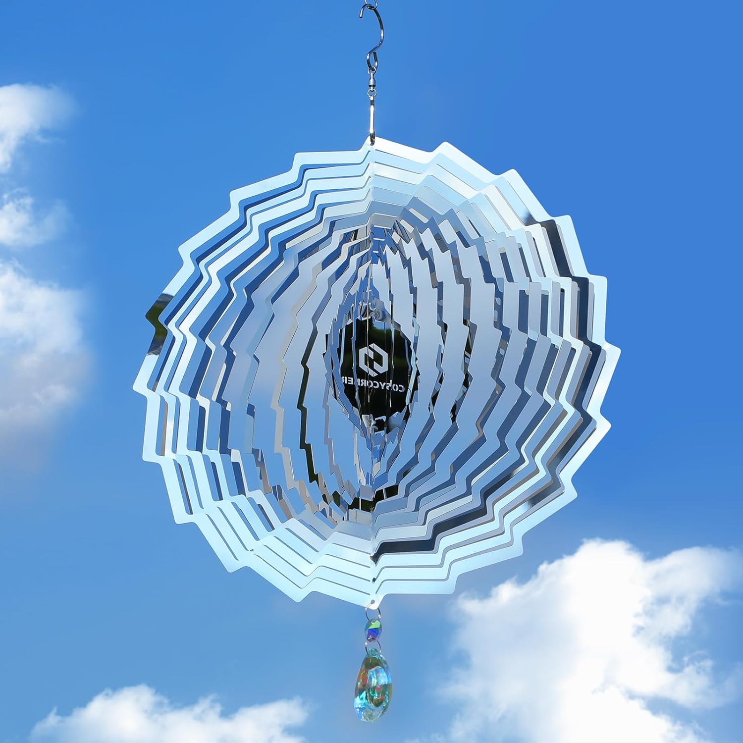 3D Wind Spinners Outdoor Flowing-Light Effect Metal Garden Decor, Highly Reflective Bird Deterrents for Outside, Mirrored Wind Sculptures to Scare Birds Away from Yard Patio Farm (Vortex-Silver)