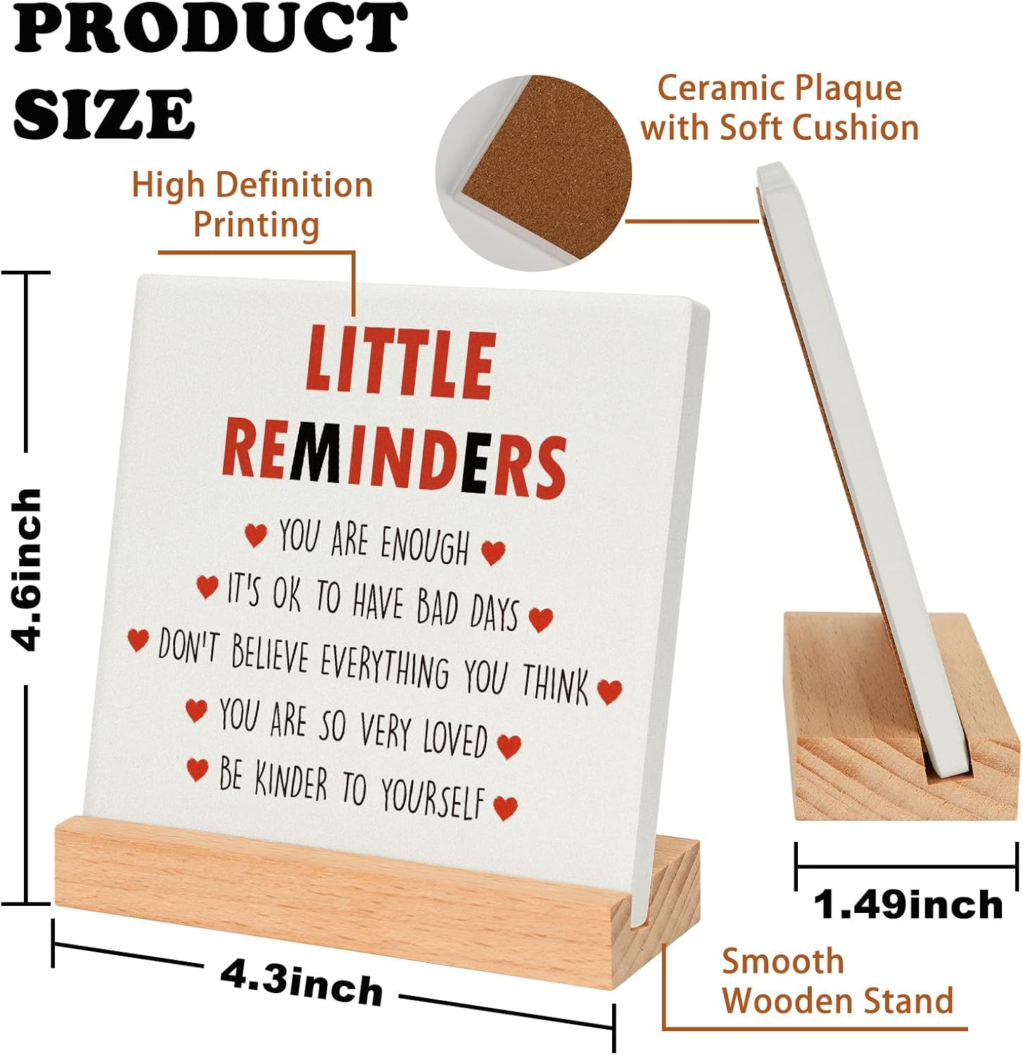 - Positive Daily Reminders for Desk Accessories: The Uplifting Little Reminders โYOU ARE ENOUGH...โ are Made from good-quality and well packaged in a box. It can express encouragement and conveys the artistic touch. It is easy to carry and takes up less space with a 4.3"x4.3" eye-catching ceramic plate and a L4.3"x W1.5" smooth wooden base. Suitable for gift giving to friends, Teenage, graduates, colleagues and college girls, etc. Give them positive energy and inspiration with this delicate emotion cheerful support gift.